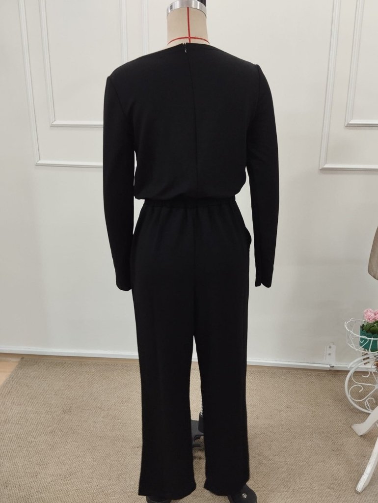 Kadın Askıdan Bağlamalı V Yakalı Belden Süs Bağcıklı Tulum , 33113