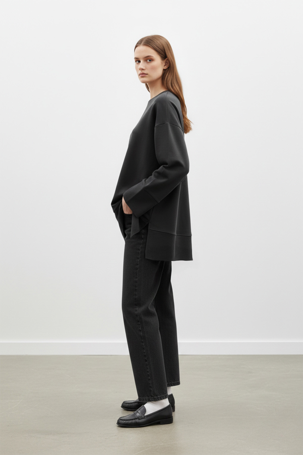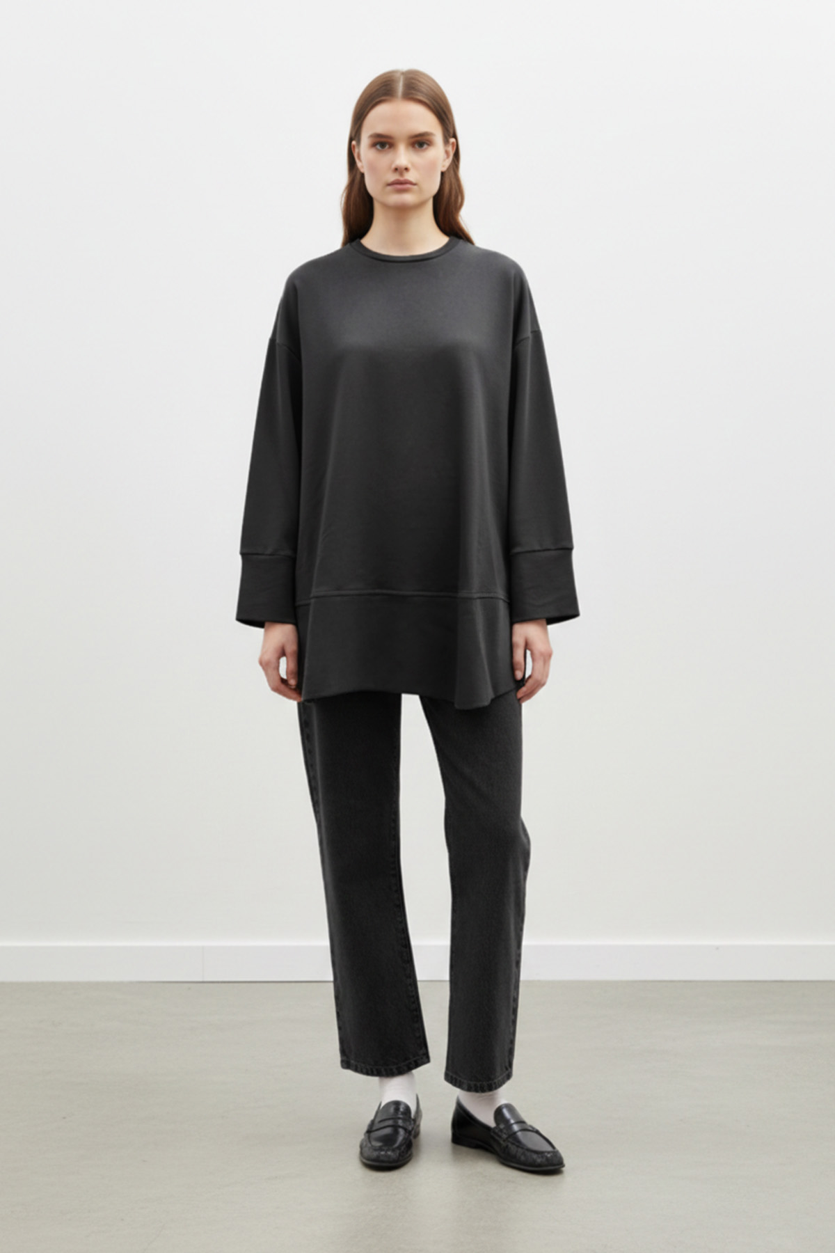 Kadın Bisiklet Yaka Düşük Omuz Örme Tunik, rahat kesimi ve yumuşak dokulu örme kumaşıyla günlük kullanım için ideal bir parçadır. Düşük omuz detayı modern bir görünüm sunarken, bisiklet yaka tasarımı sade ve zamansız bir stil oluşturur. Uzun kollu ve düz formu sayesinde pantolonlarla kolayca kombinlenebilir. Günlük şıklık ve konforu bir arada sunan bu tunik, ilkbahar ve yaz sezonunda rahatlıkla tercih edilebilir.