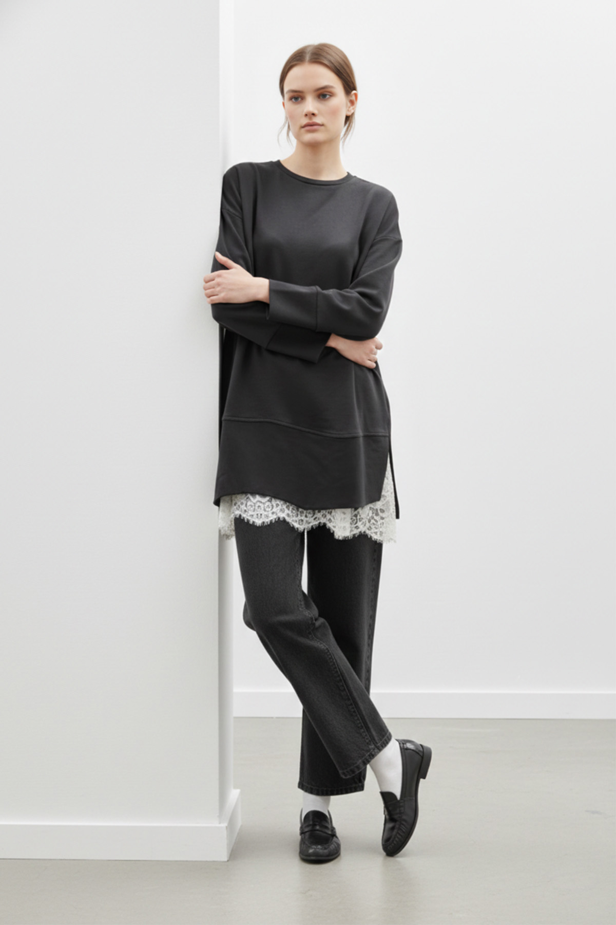 Kadın Bisiklet Yaka Düşük Omuz Örme Tunik -20735TUN