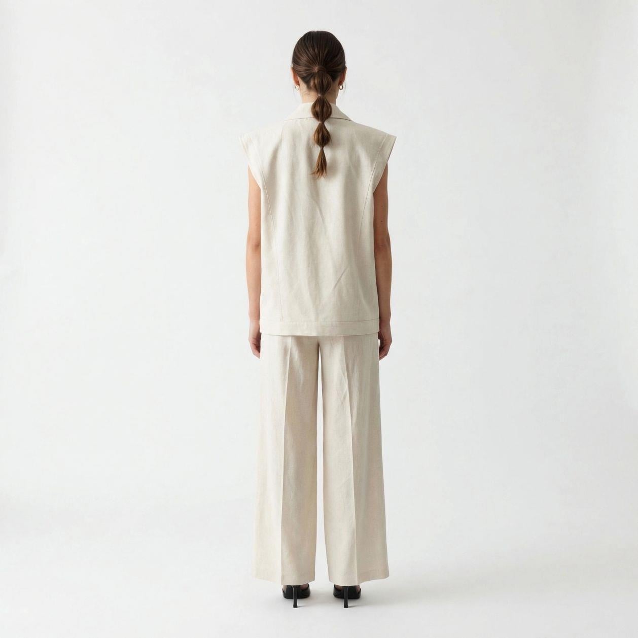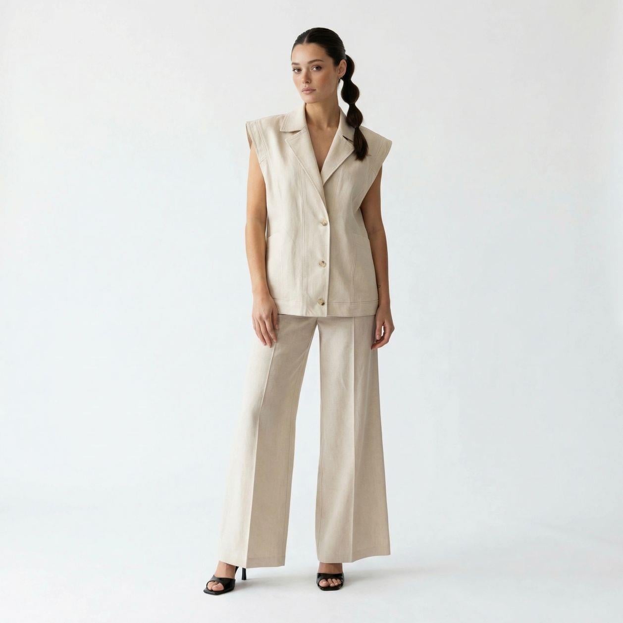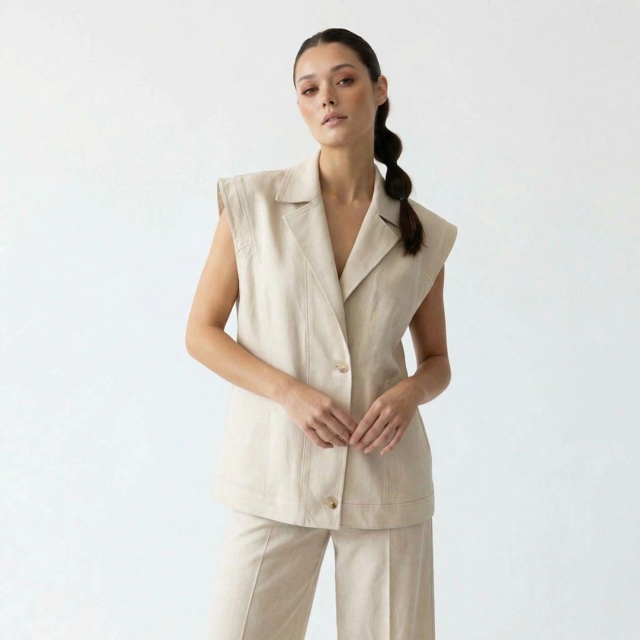 Çiçek Nakışlı Düğmeli Yelek -Taş