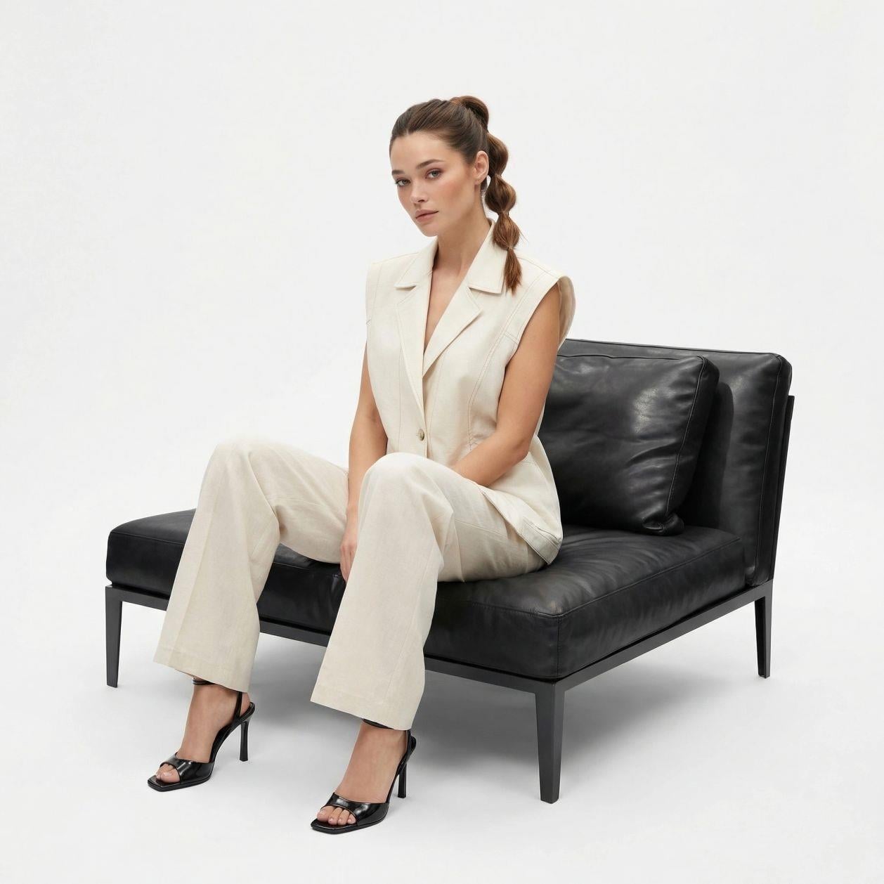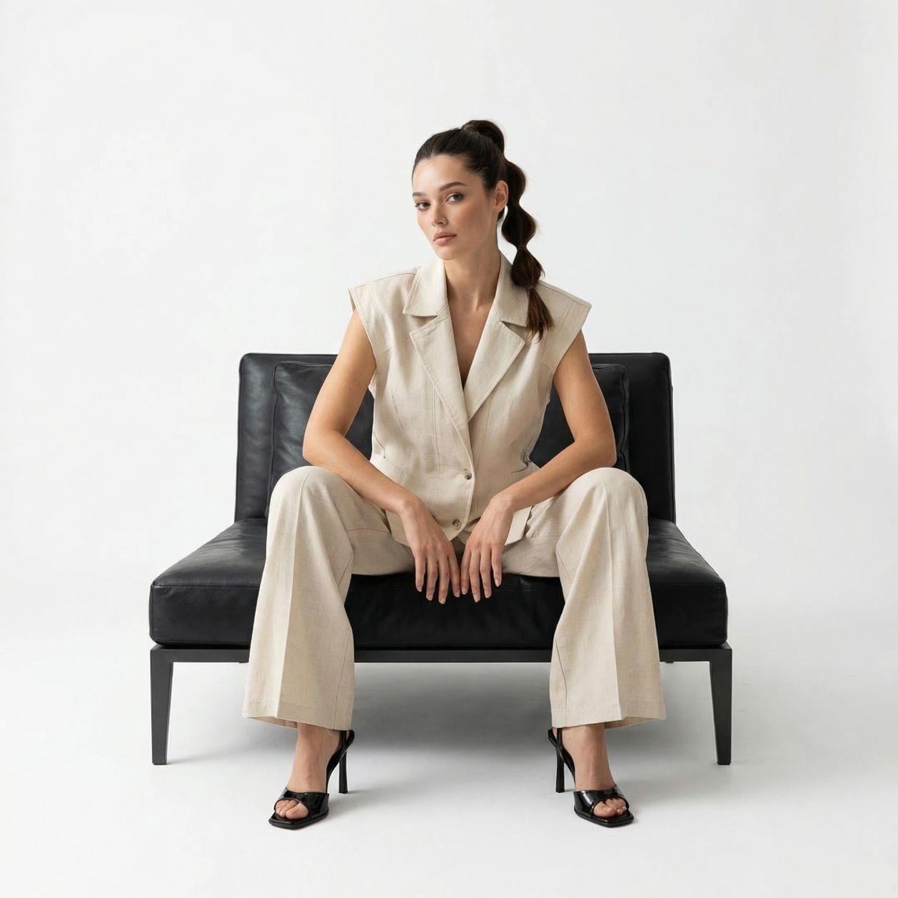 Püskül ve Kuşak Detaylı Gold Düğmeli Merserize Yelek 5207