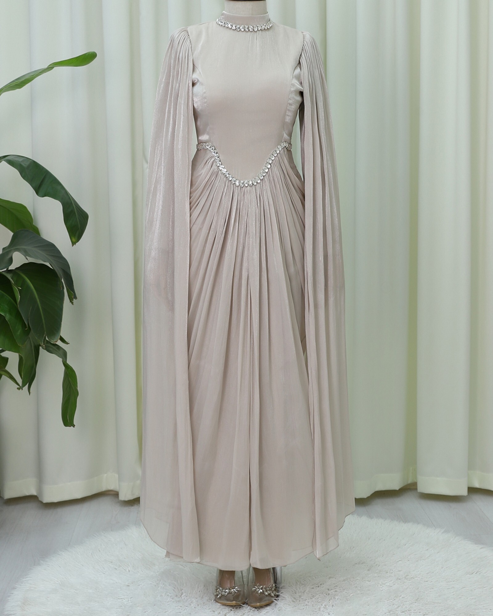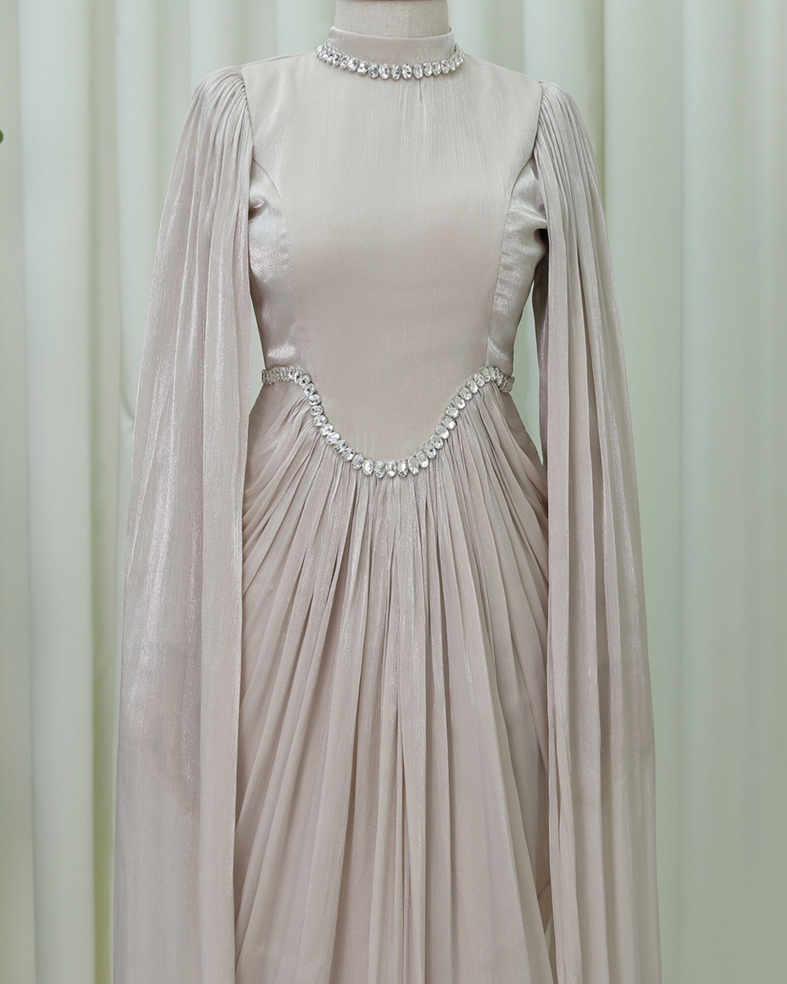 Podyumplus Yakası Ve Beli Taşlı Pelerin Detaylı Janjan Abiye -Taş