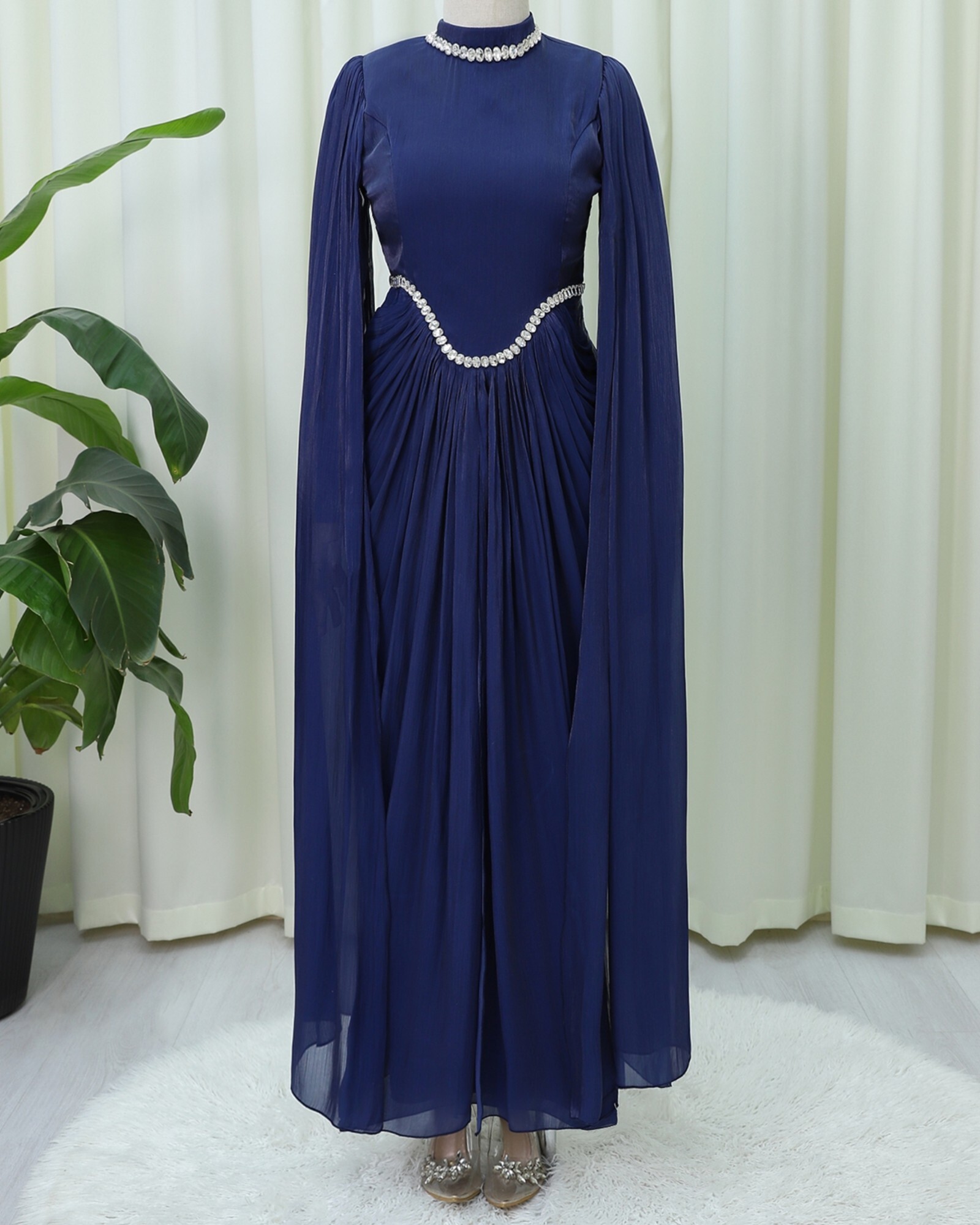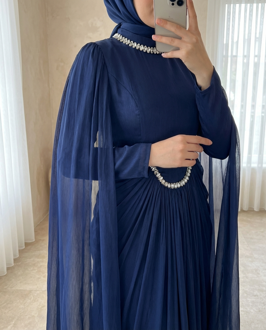 Podyumplus Yakası Ve Beli Taşlı Pelerin Detaylı Janjan Abiye -Laci