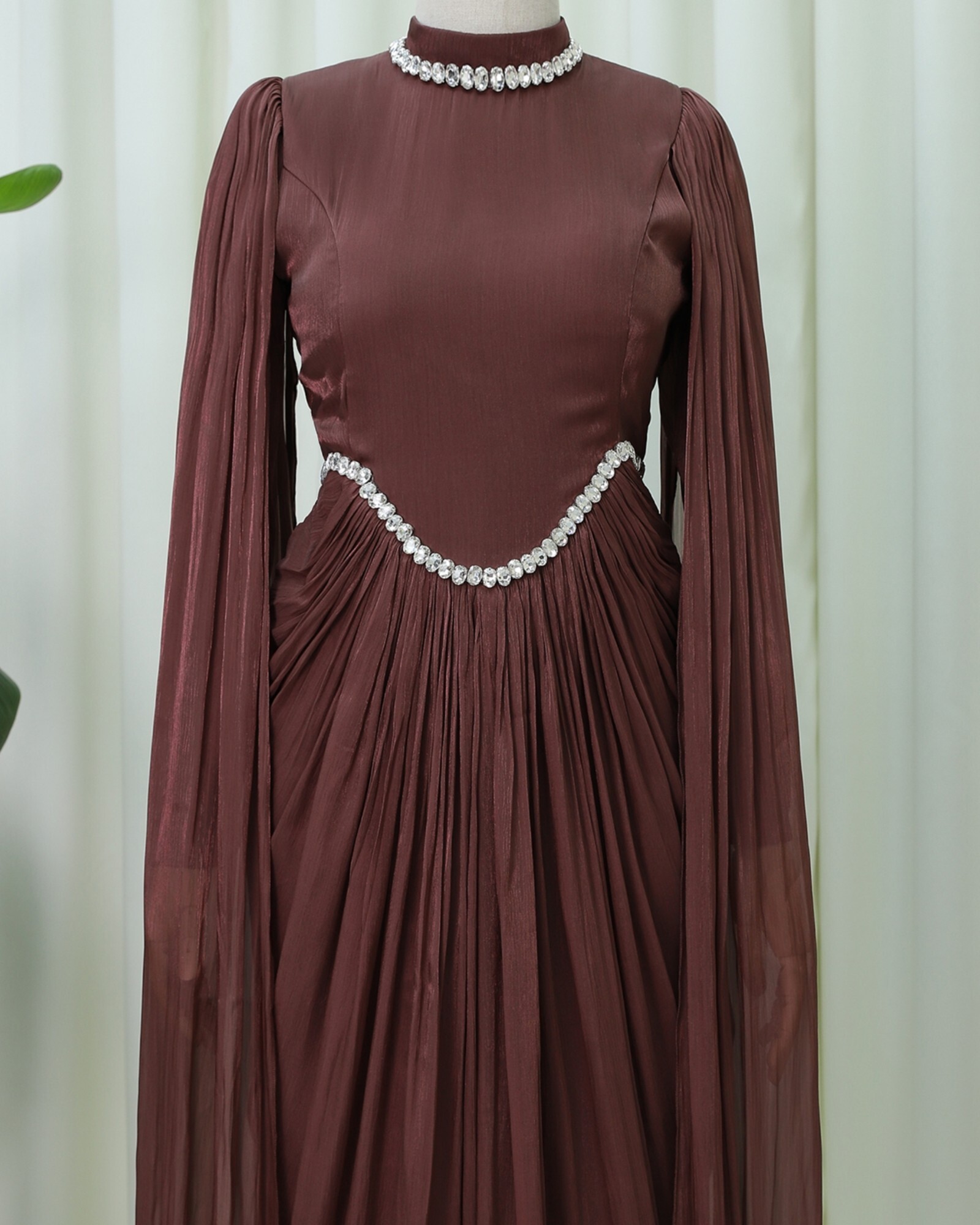 Işıltılı ve göz alıcı tasarımıyla özel günlerin vazgeçilmezi olmaya aday Yakası ve Beli Taşlı Pelerin Detaylı Janjan Abiye, zarafeti modern detaylarla buluşturan çok şık bir modeldir. Janjan kumaşın ışığı yansıtan etkisi, her hareketinizde elegan bir parıltı oluştururken, pelerin detayı abiyeye kusursuz bir akış ve ihtişamlı bir duruş kazandırır. Yaka ve bel bölümünde yer alan taş işlemeleri ise şıklığı zirveye taşıyarak elbiseye değerli bir dokunuş ekler.