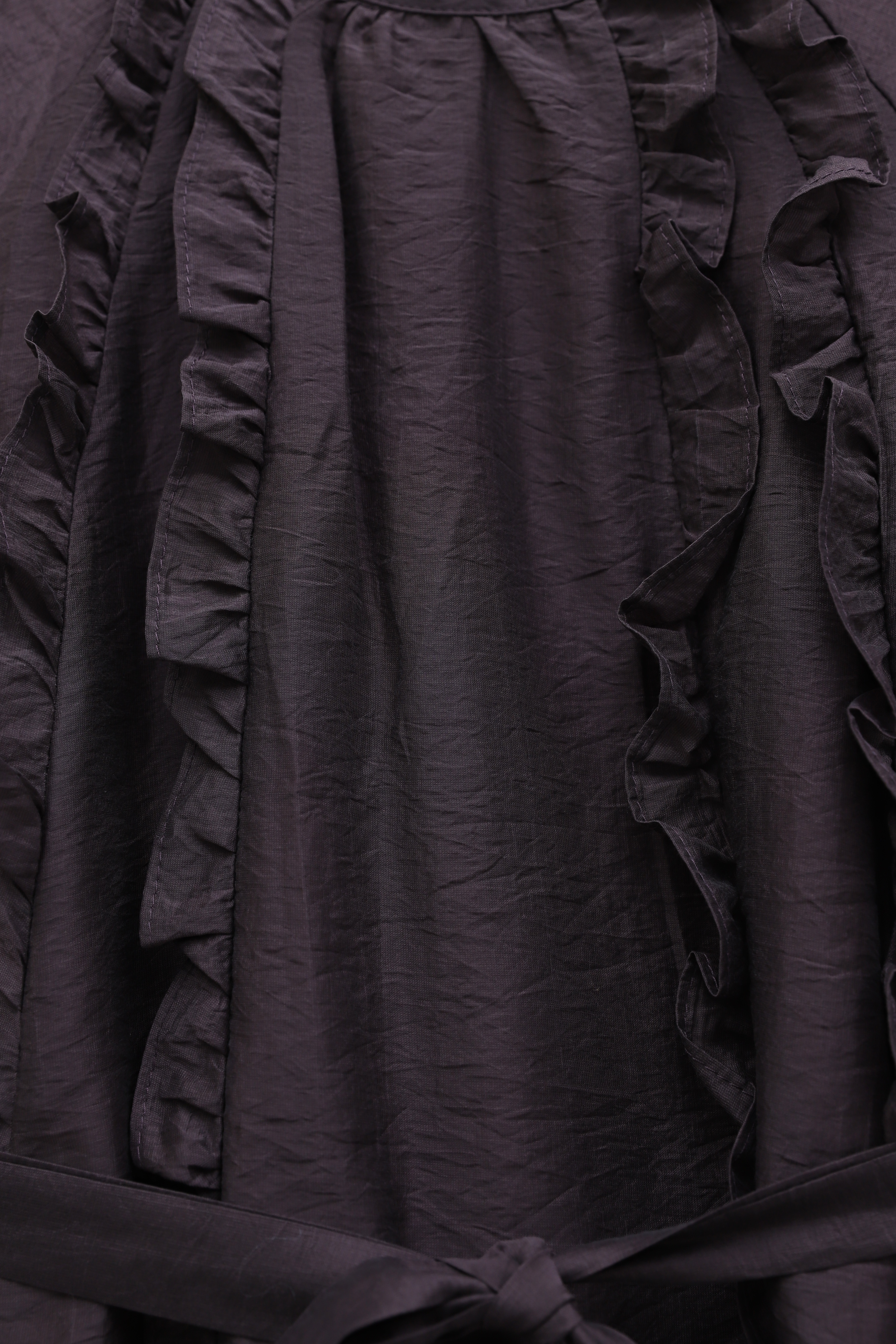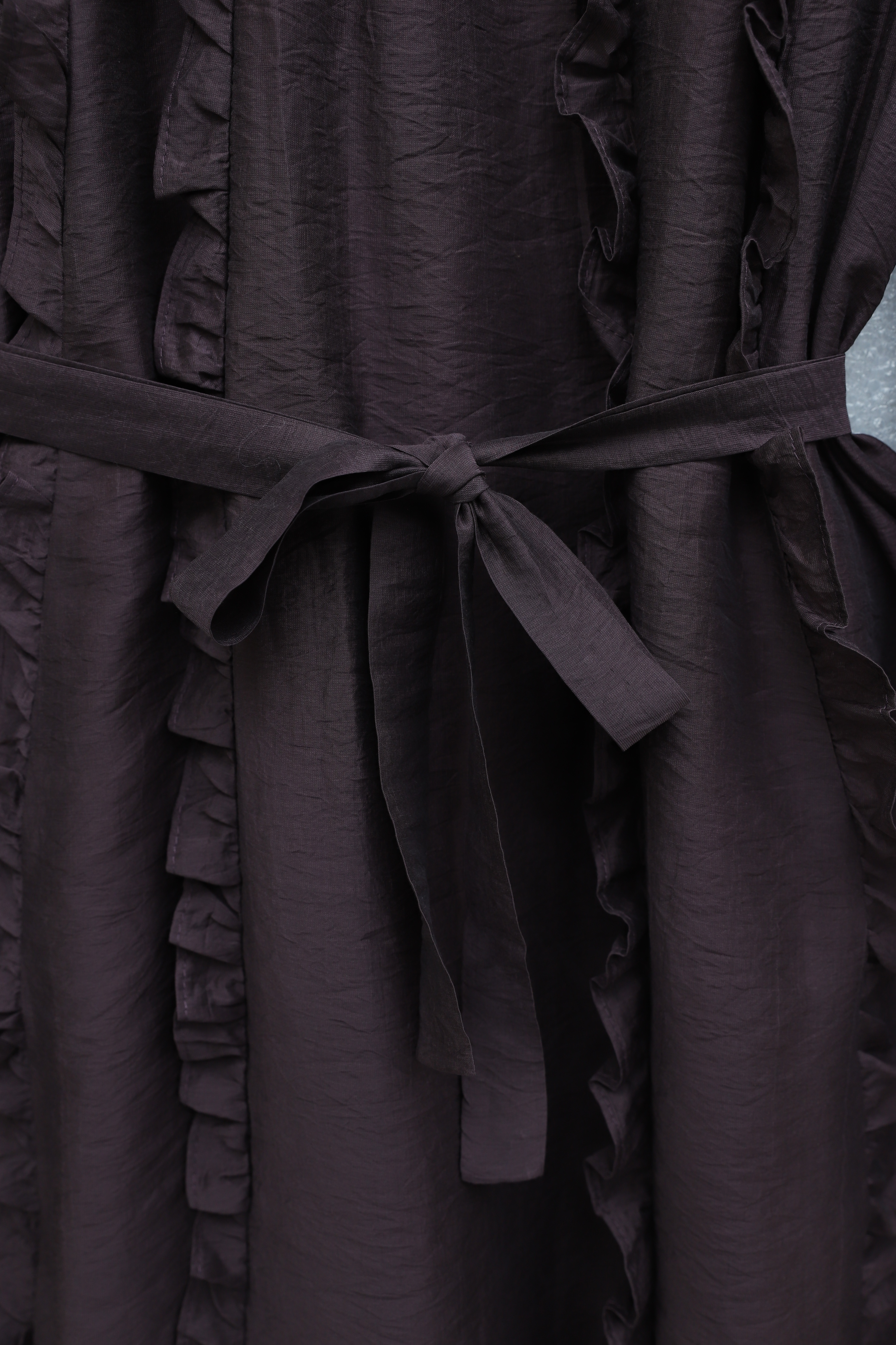 Önü Fırfırlı Beli Kemerli Kolu Lastikli Astarlı Cupra Elbise