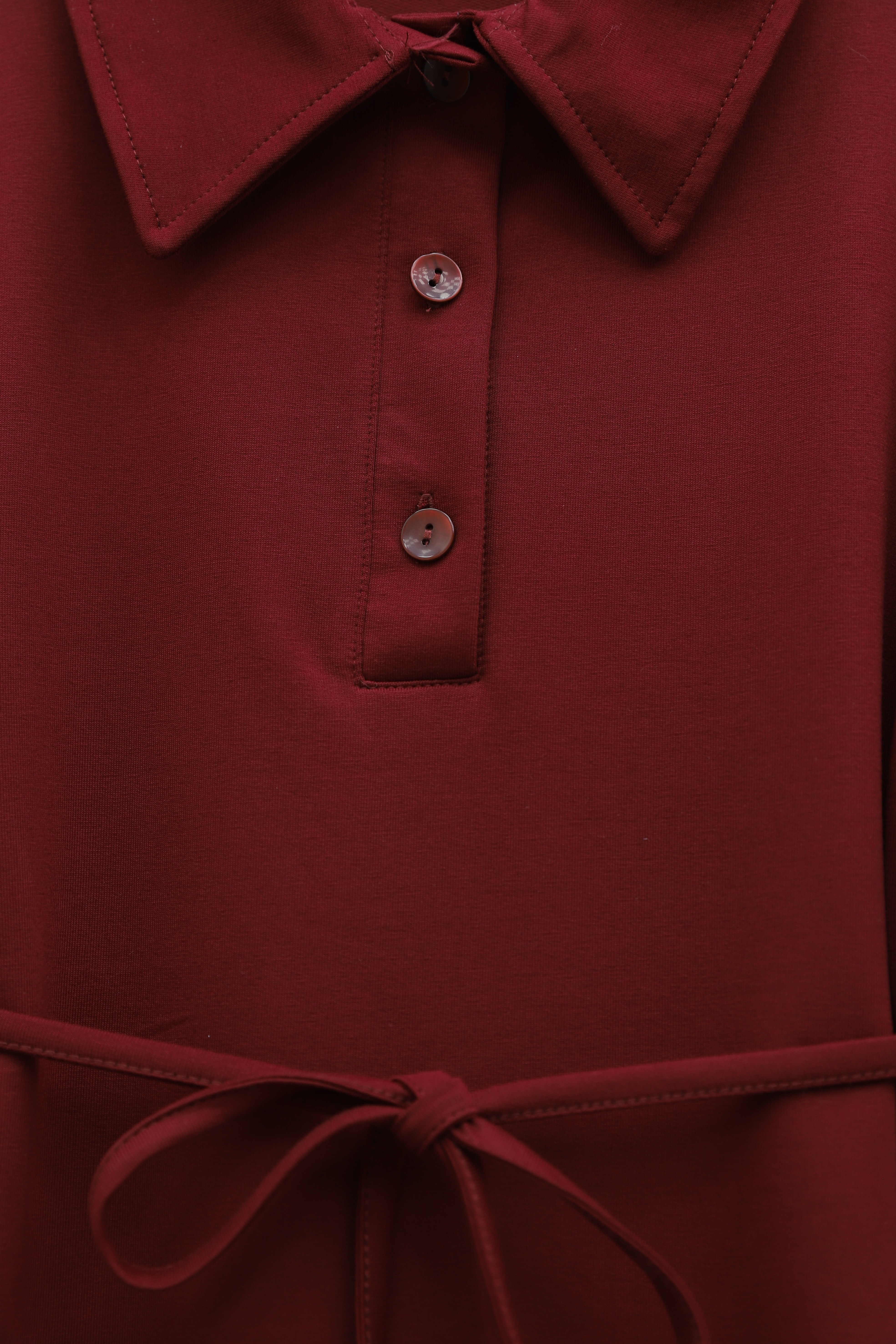 Podyumplus Yakalı Düğmeli Beli Bağlamalı Penye Elbise -Bordo