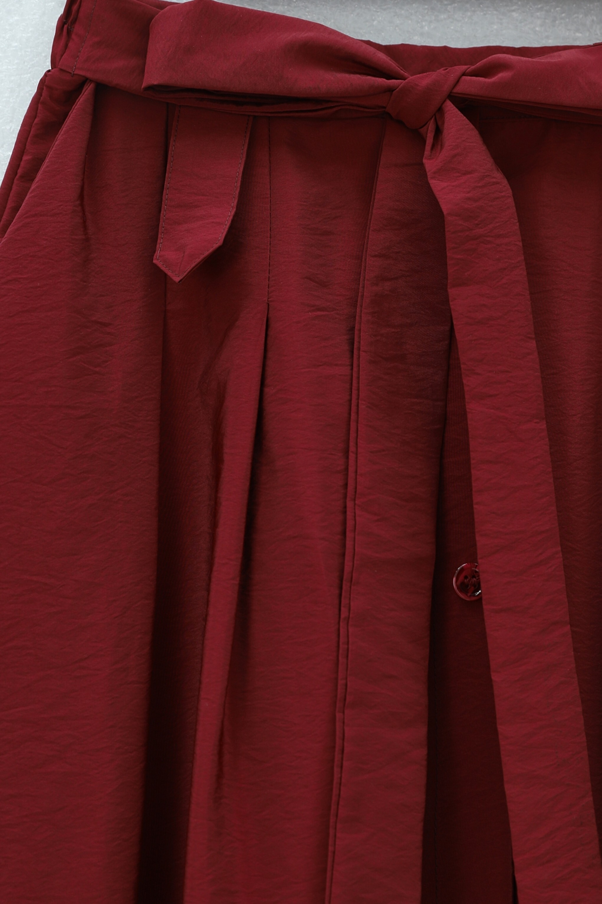 Podyumplus Önü Düğmeli Bağcıklı Paraşüt Etek -Bordo
