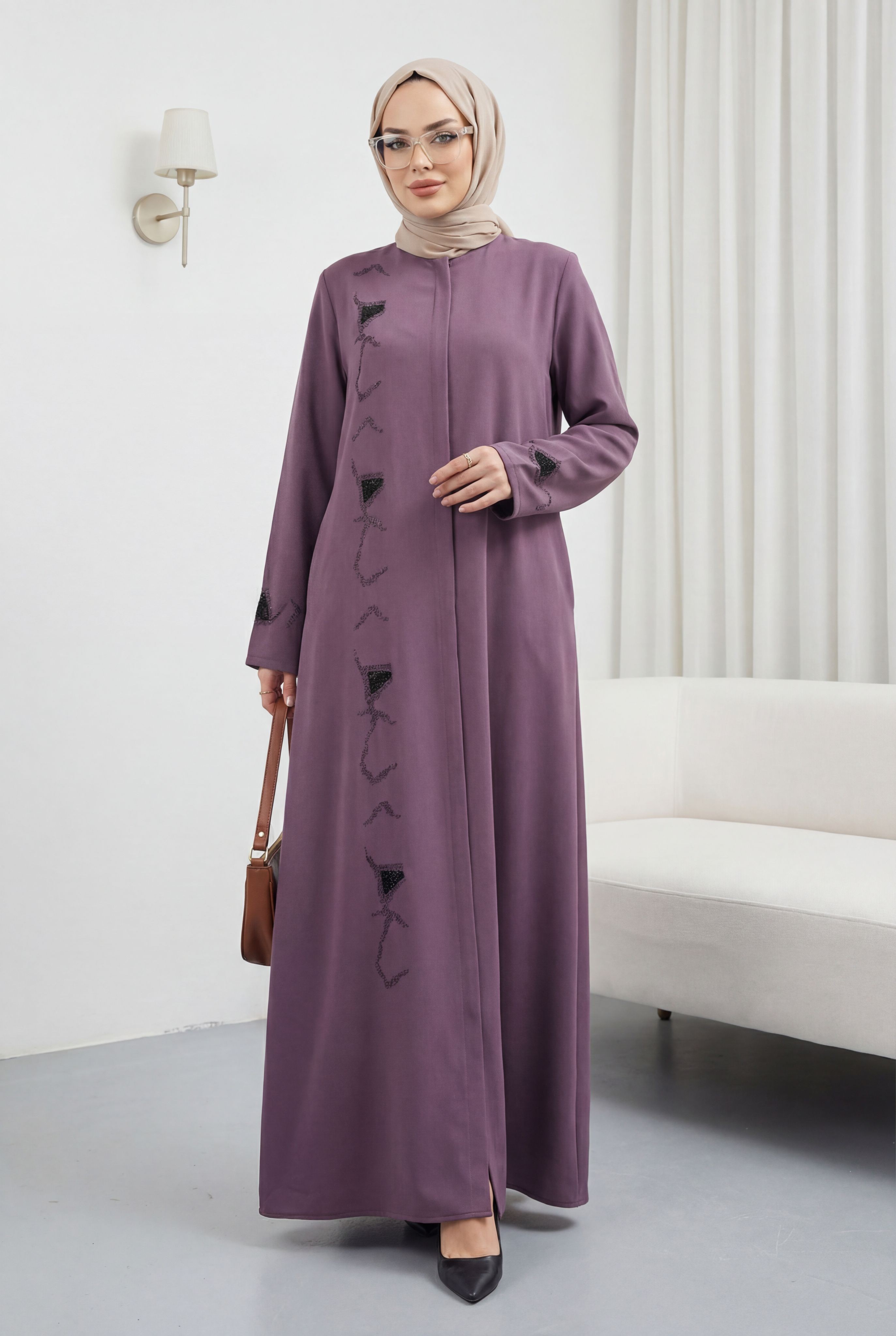 Gizli Patlı Taşlı Ferace Gül Kurusu HM2851 Özellikleri