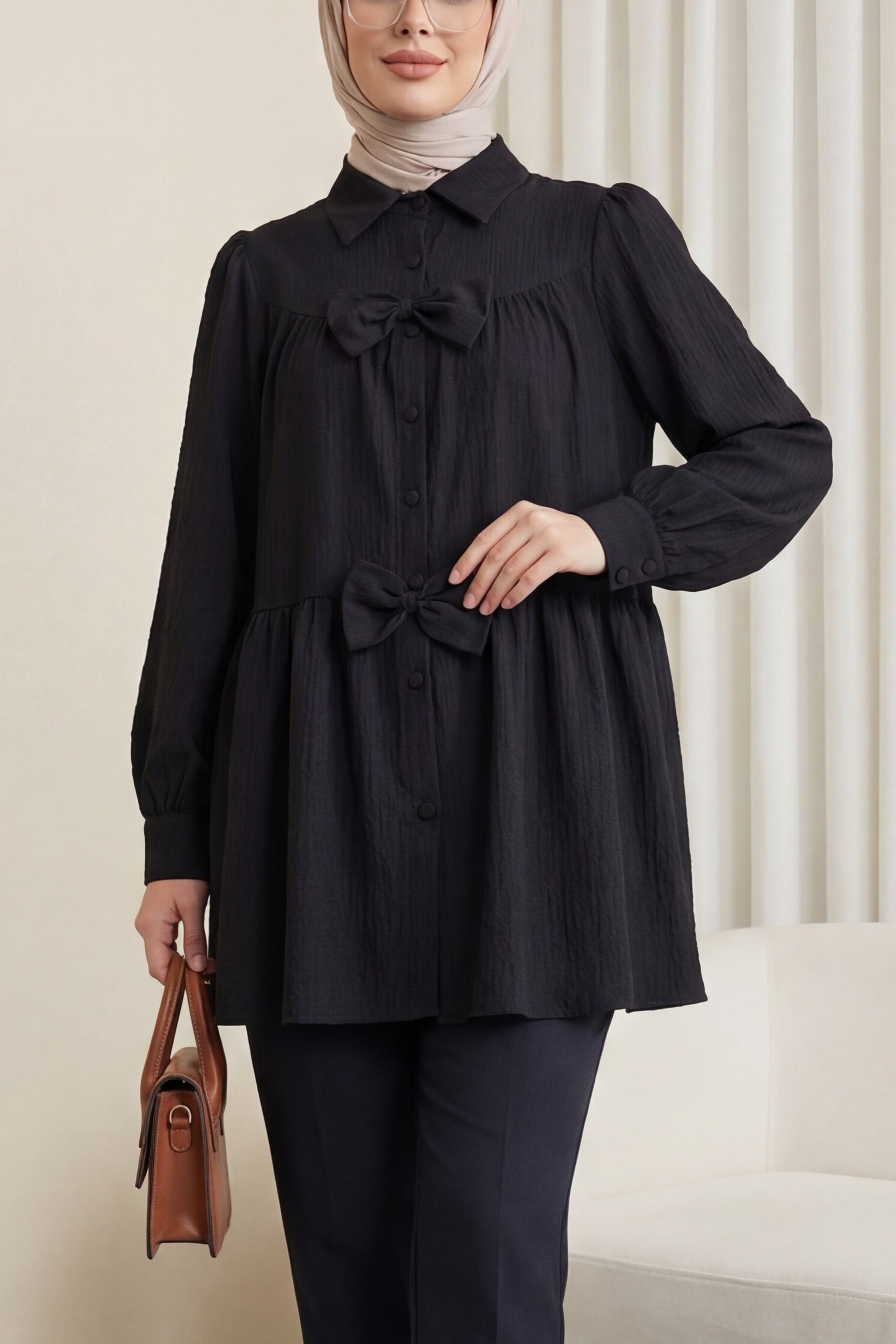 Şık ve özgün tasarımıyla dikkat çeken Önü Fiyonk Detaylı Parçalı Gömlek, modern görünümünü zarif fiyonk detayıyla tamamlıyor. Parçalı kesimi sayesinde dinamik bir duruş sunarken, hem klasik hem günlük kombinlerde rahatlıkla kullanılabilir. Farklılık arayanlar için stil sahibi bir parça!