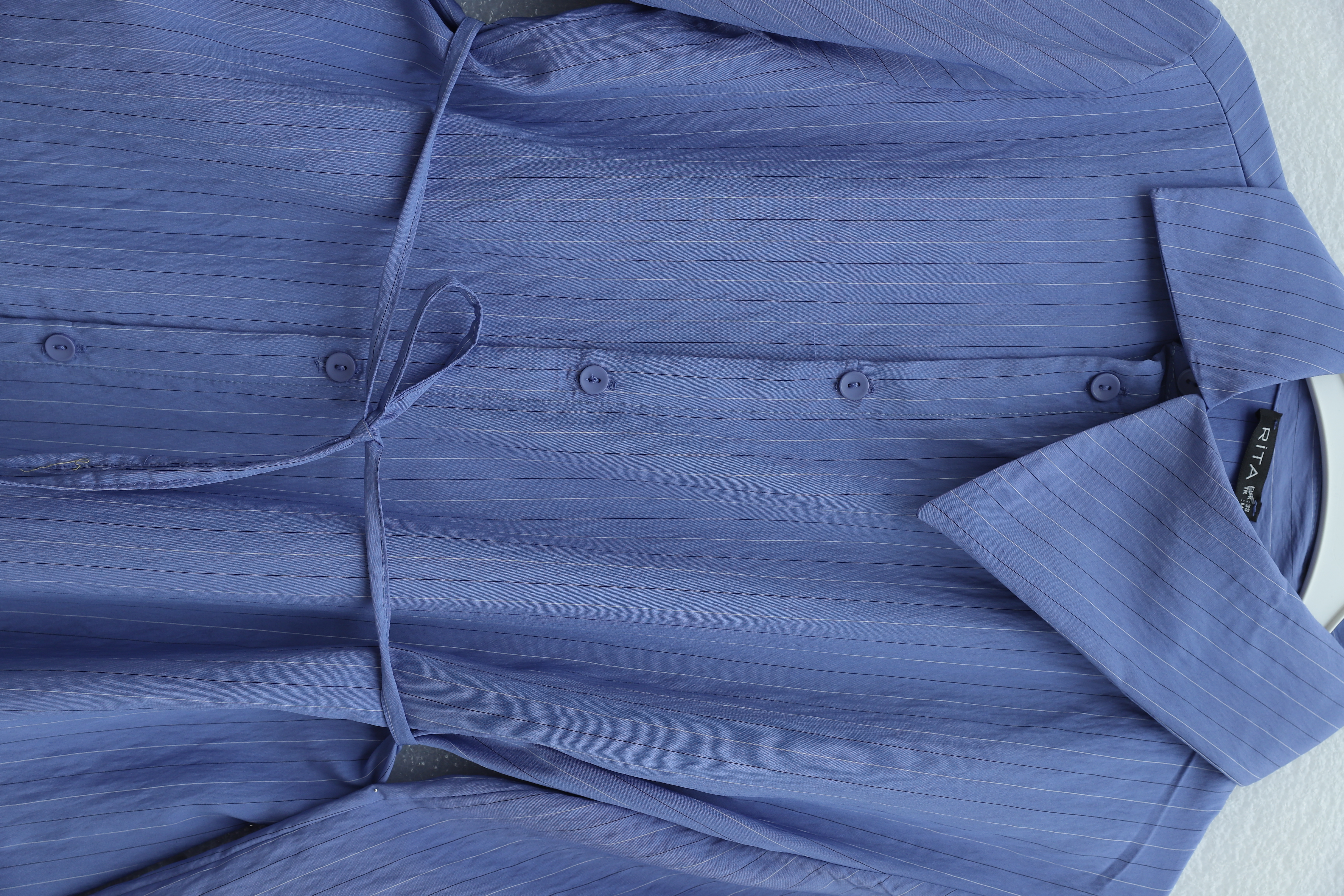 Yandan Yakalı Boydan Düğmeli Çizgili Bağcıklı Krinkıl Gömlek