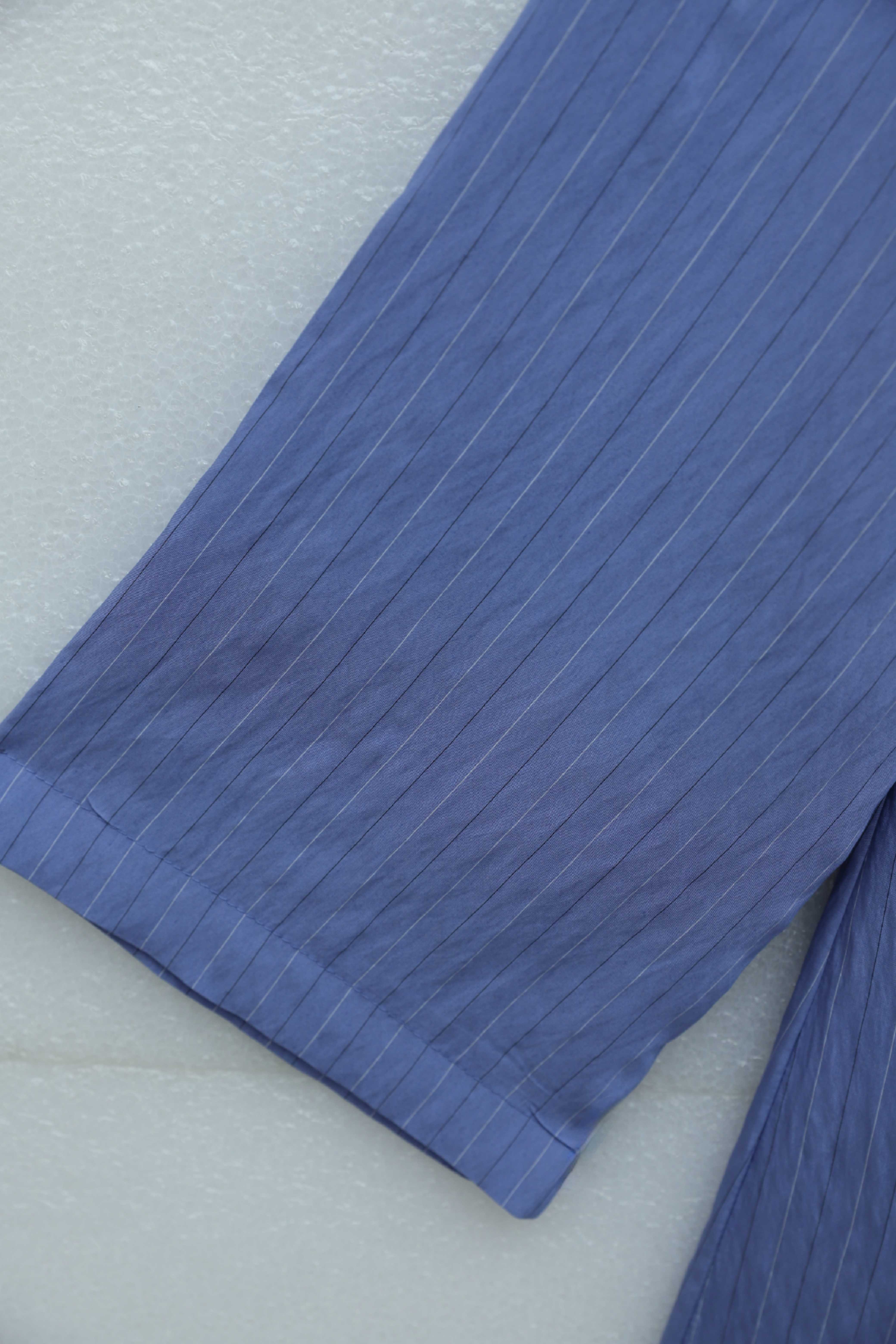 Podyumplus Yandan Yakalı Boydan Düğmeli Çizgili Bağcıklı Krinkıl Gömlek -İndigo