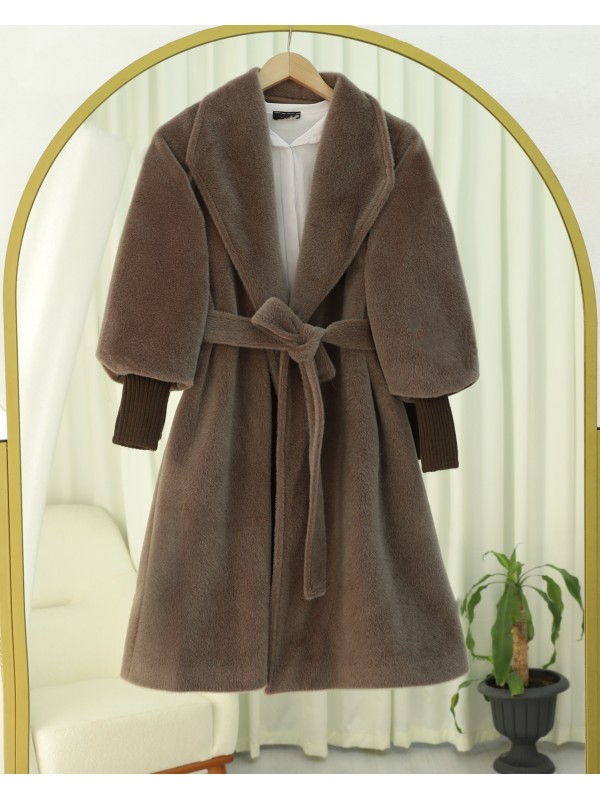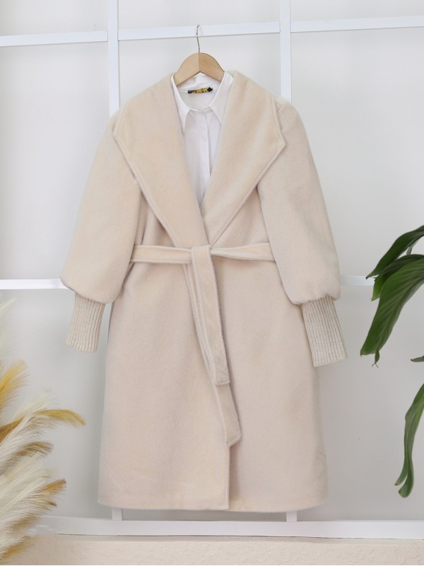 Kolu Ribanalı Şal Yaka Astarlı Kaşe Kaban -Toprak
