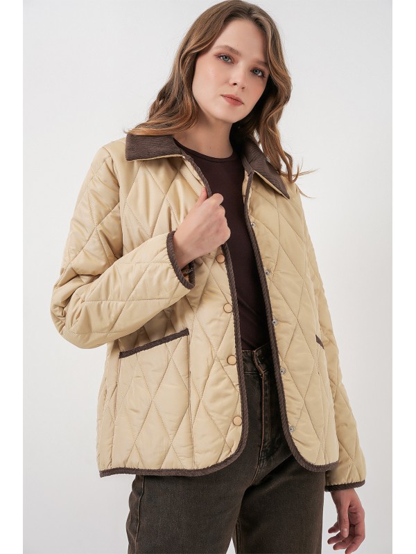 Kadın Kapitone Oversize Mont 5226 - Bej