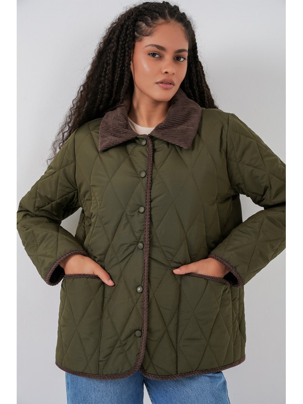 Kadın Kapitone Oversize Mont 5226 - Haki Kahve