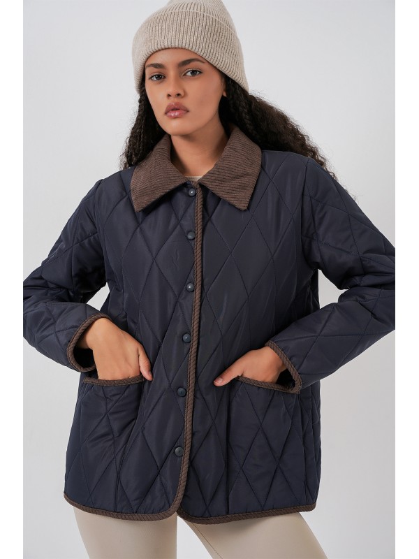 Kadın Kapitone Oversize Mont 5226 - Lacivert Kahve