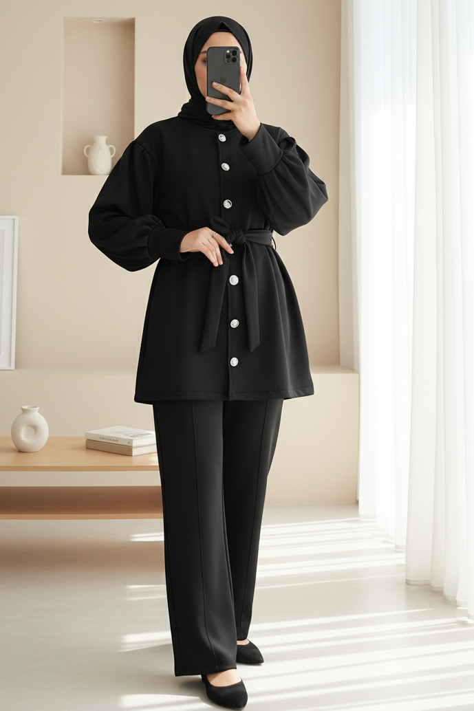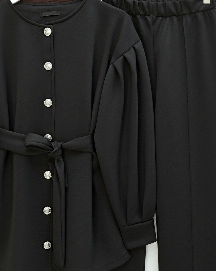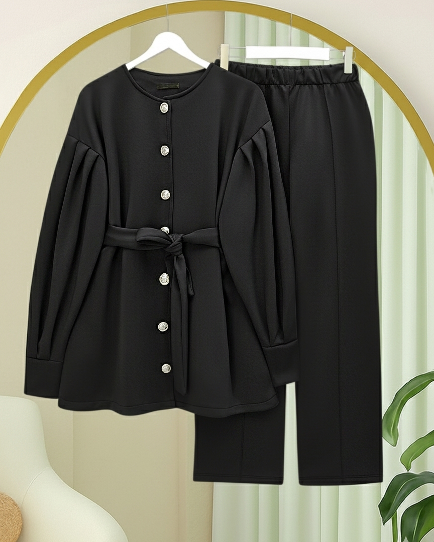 Minimal ve modern çizgisiyle dolabınıza çok yönlü bir kombin alternatifi ekleyen bu takım; “scuba takım”, “kemerli takım modelleri”, “önden düğmeli kadın takım” gibi kategorilerde öne çıkar.