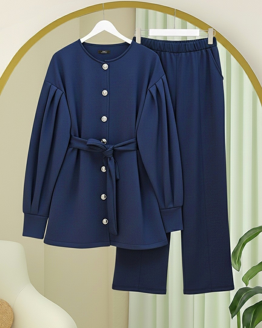 Minimal ve modern çizgisiyle dolabınıza çok yönlü bir kombin alternatifi ekleyen bu takım; “scuba takım”, “kemerli takım modelleri”, “önden düğmeli kadın takım” gibi kategorilerde öne çıkar.