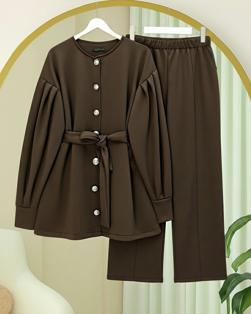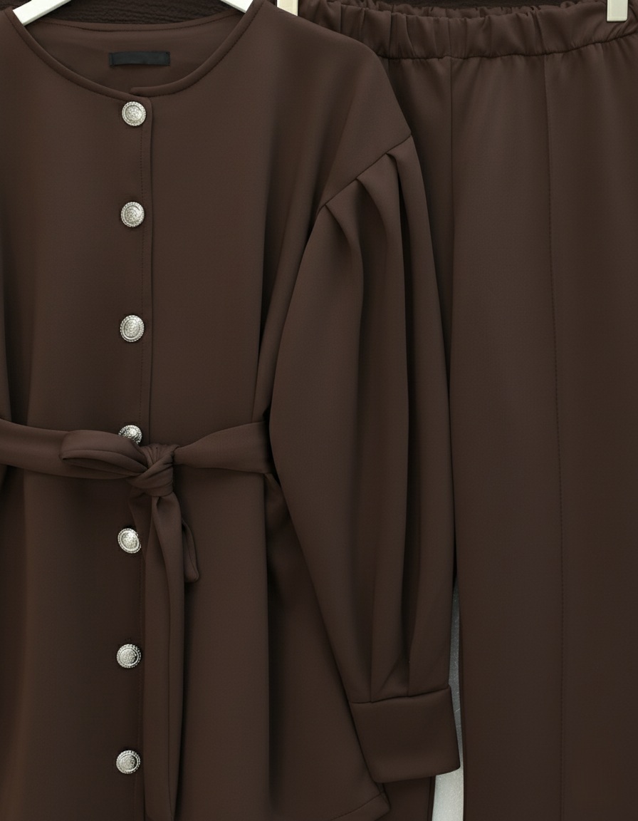 Minimal ve modern çizgisiyle dolabınıza çok yönlü bir kombin alternatifi ekleyen bu takım; “scuba takım”, “kemerli takım modelleri”, “önden düğmeli kadın takım” gibi kategorilerde öne çıkar.