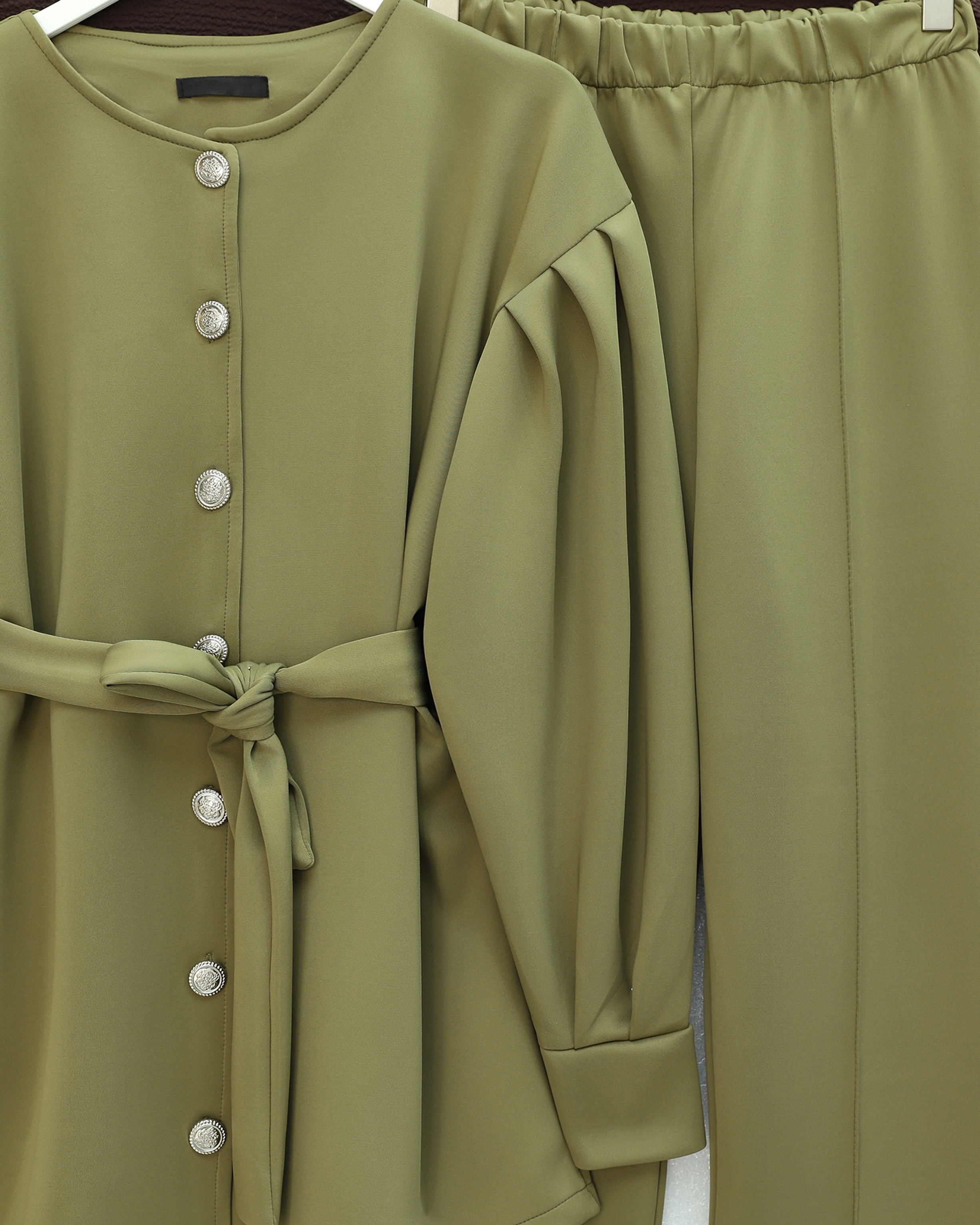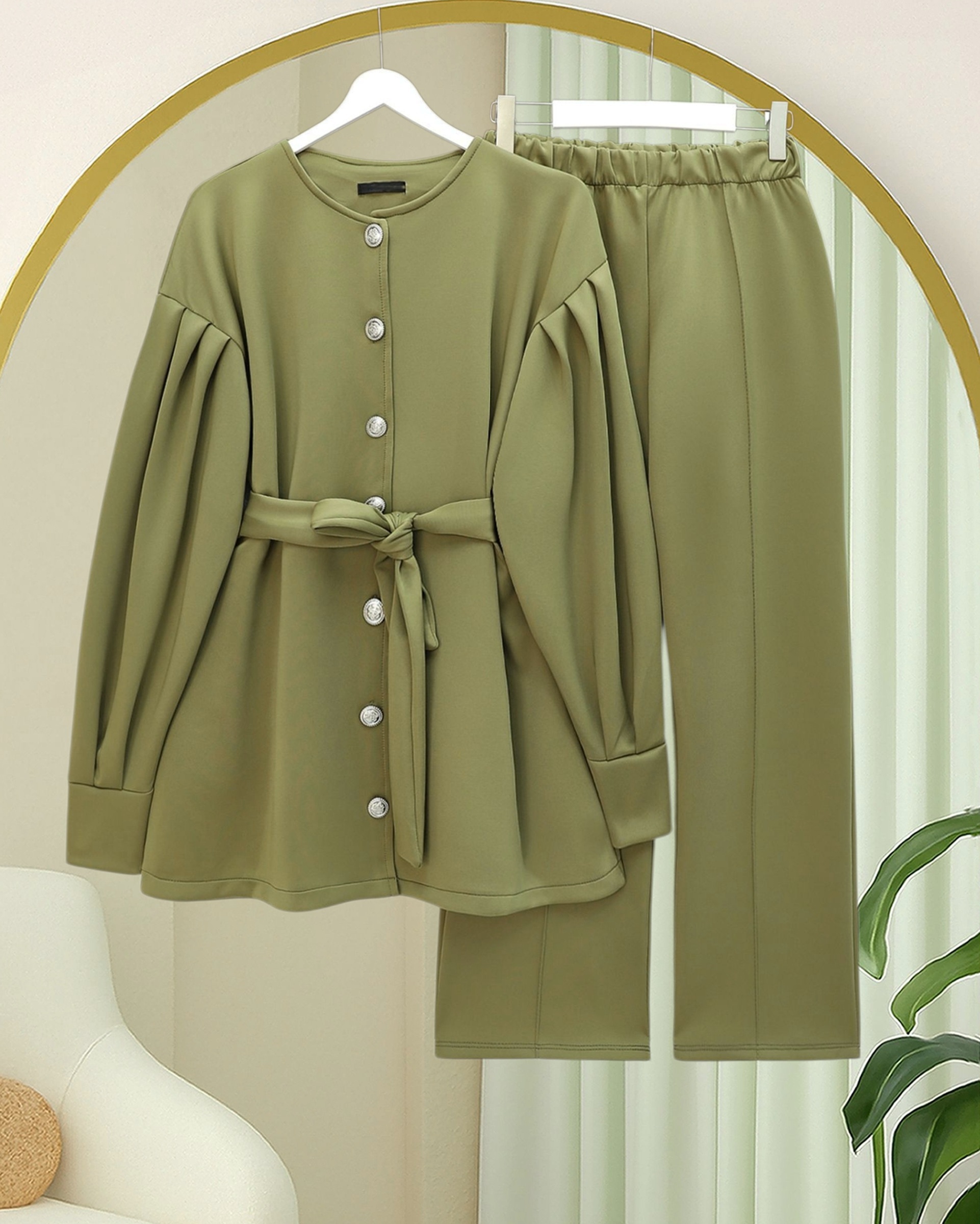 Minimal ve modern çizgisiyle dolabınıza çok yönlü bir kombin alternatifi ekleyen bu takım; “scuba takım”, “kemerli takım modelleri”, “önden düğmeli kadın takım” gibi kategorilerde öne çıkar.
