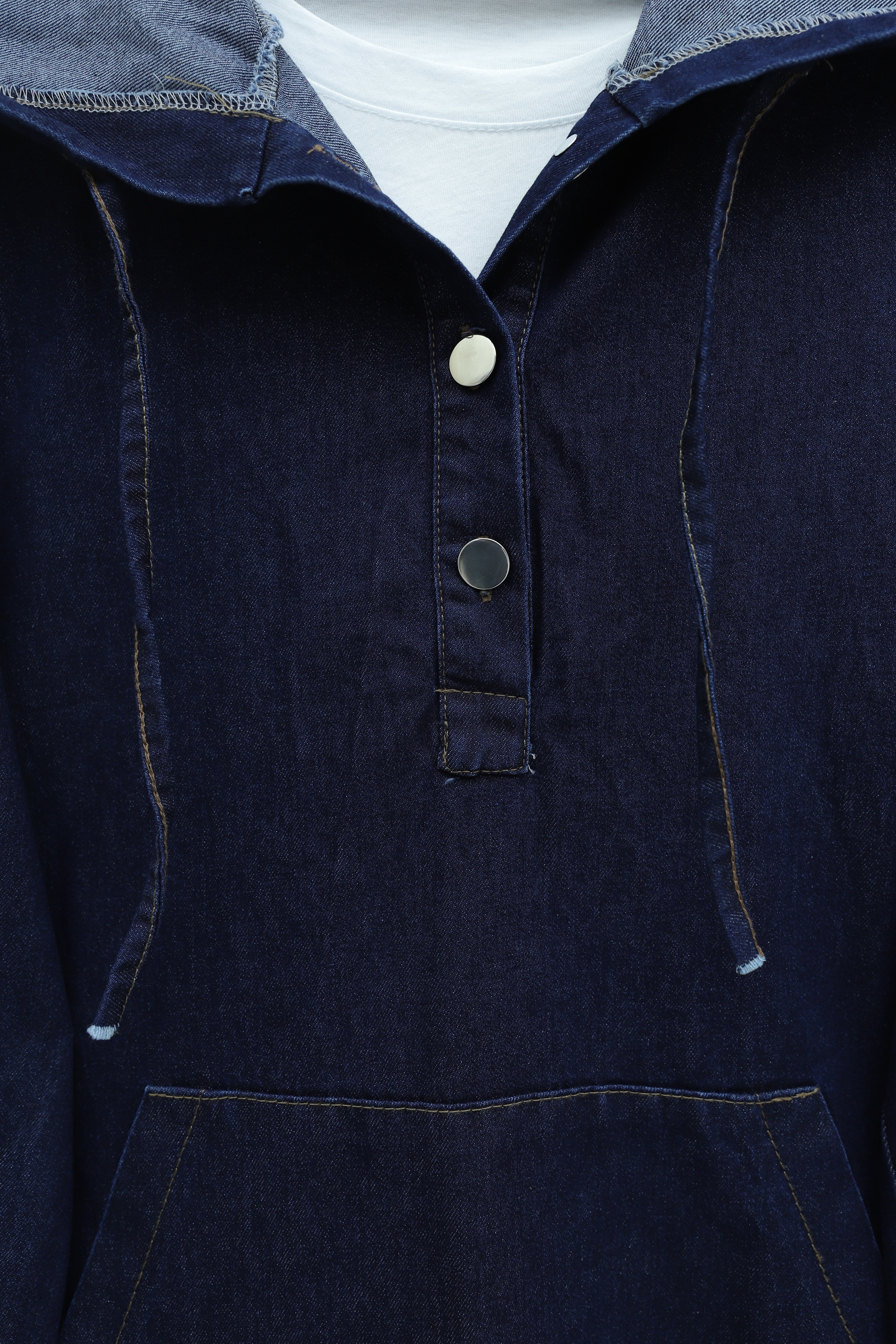 Podyumplus Kapşonlu Yarım Düğmeli Kanguru Cepli Kot Takım -K.Laci