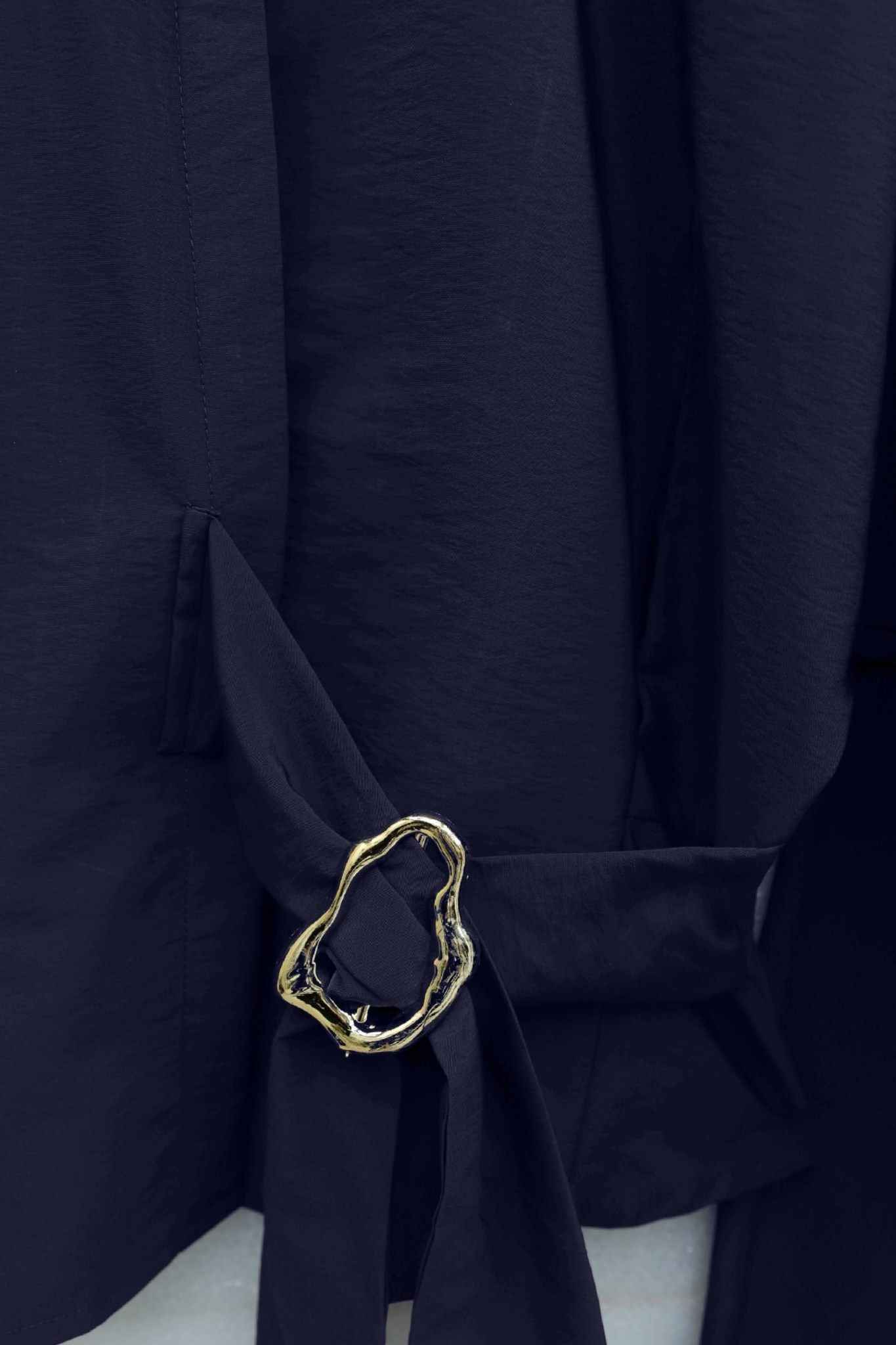 Kolu Lastikli Yandan Bağlamalı Gizli Düğmeli Cupra Takım, zarif ve modern bir stil sunar. Yandan bağlamalı formu silueti estetik şekilde vurgularken, gizli düğme detayı sade bir görünüm sağlar. Kol lastikleri konfor sunar. Cupra kumaşı akışkan ve rahattır.