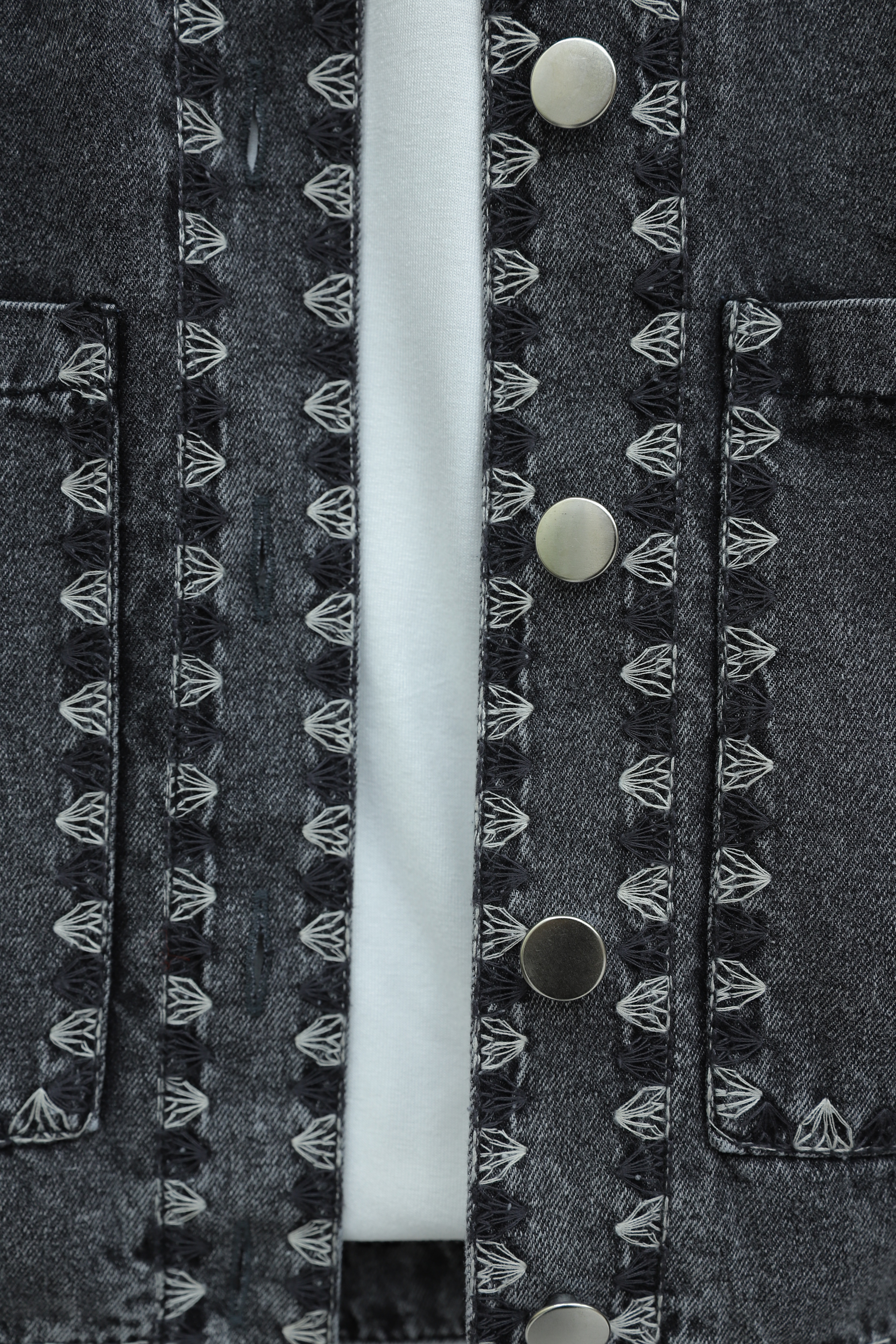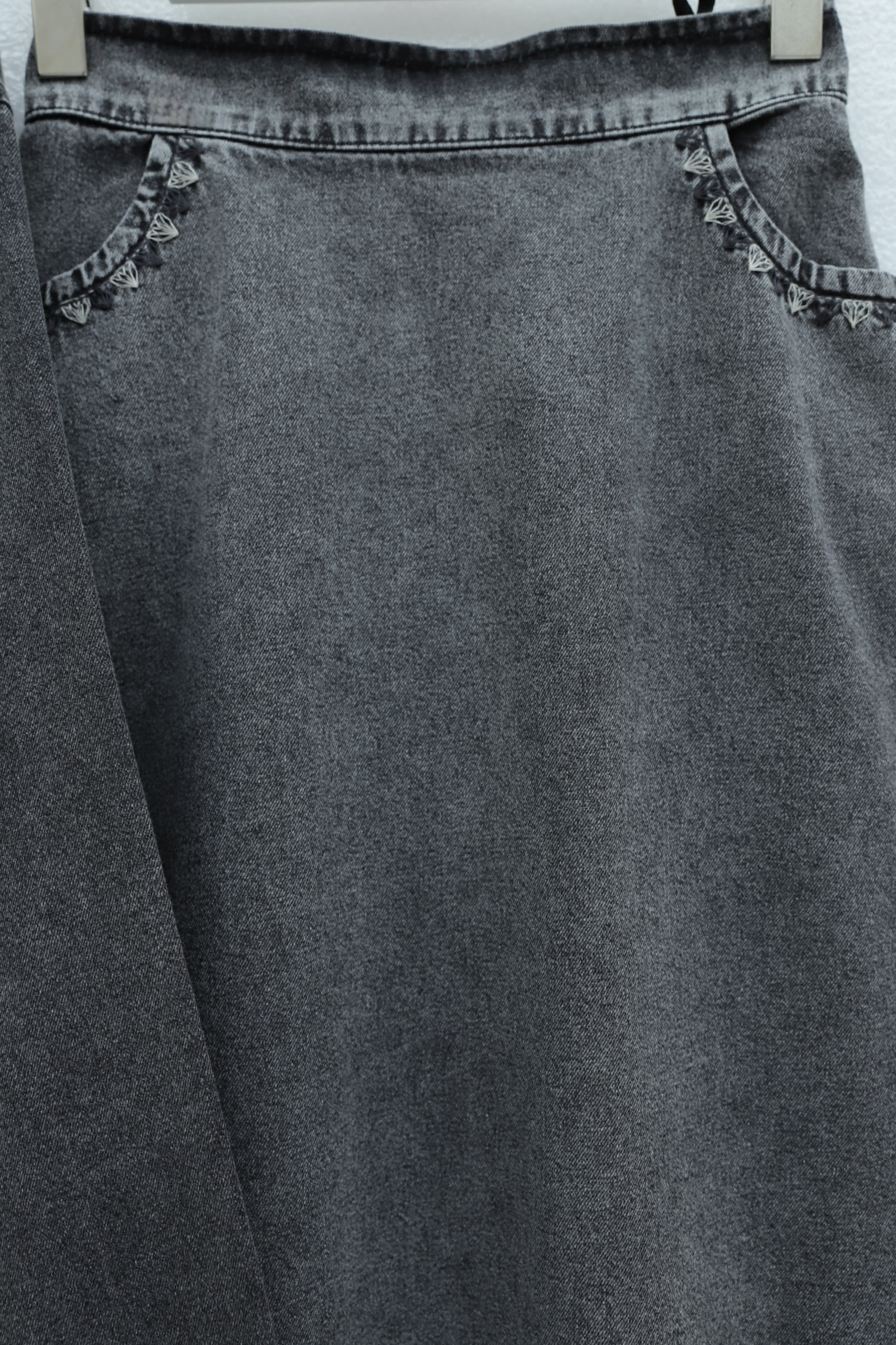 Nakış Detaylı Çift Cepli Önü Düğmeli Etekli Kot Takım