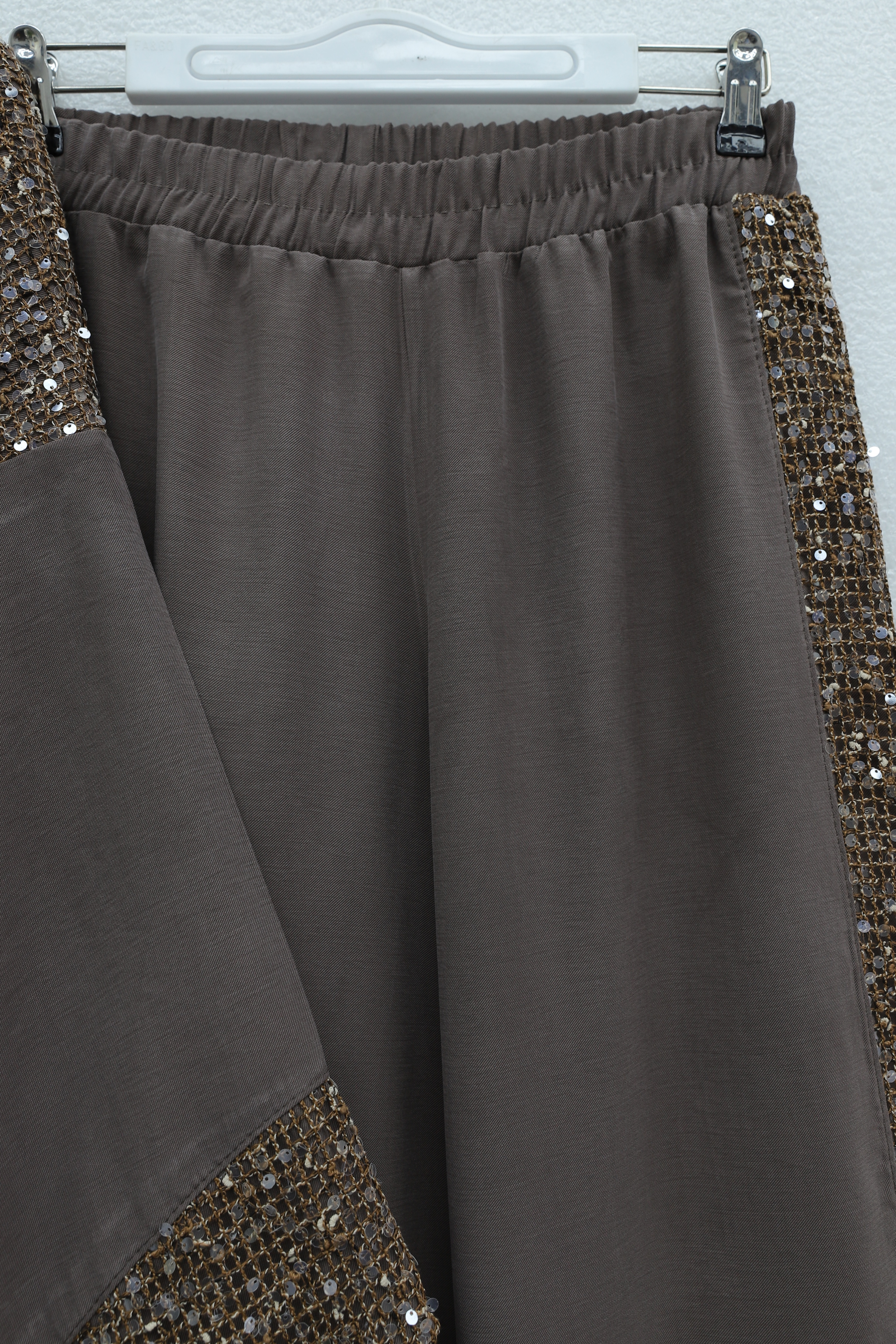Omzu ve Kolu Pul Payet Kemerli Pantolonlu Keten Kimono Takım, şık ve dikkat çekici bir stil sunar. Omuz ve kol kısmındaki pul payet detayları ışıltılı bir görünüm kazandırırken, kemer detayı beli zarif şekilde vurgular. Kimono formu modern ve akışkan bir duruş sağlar. Pantolonlu tasarımı dengeli bir siluet oluşturur. Keten kumaşı hafif ve nefes alabilendir.