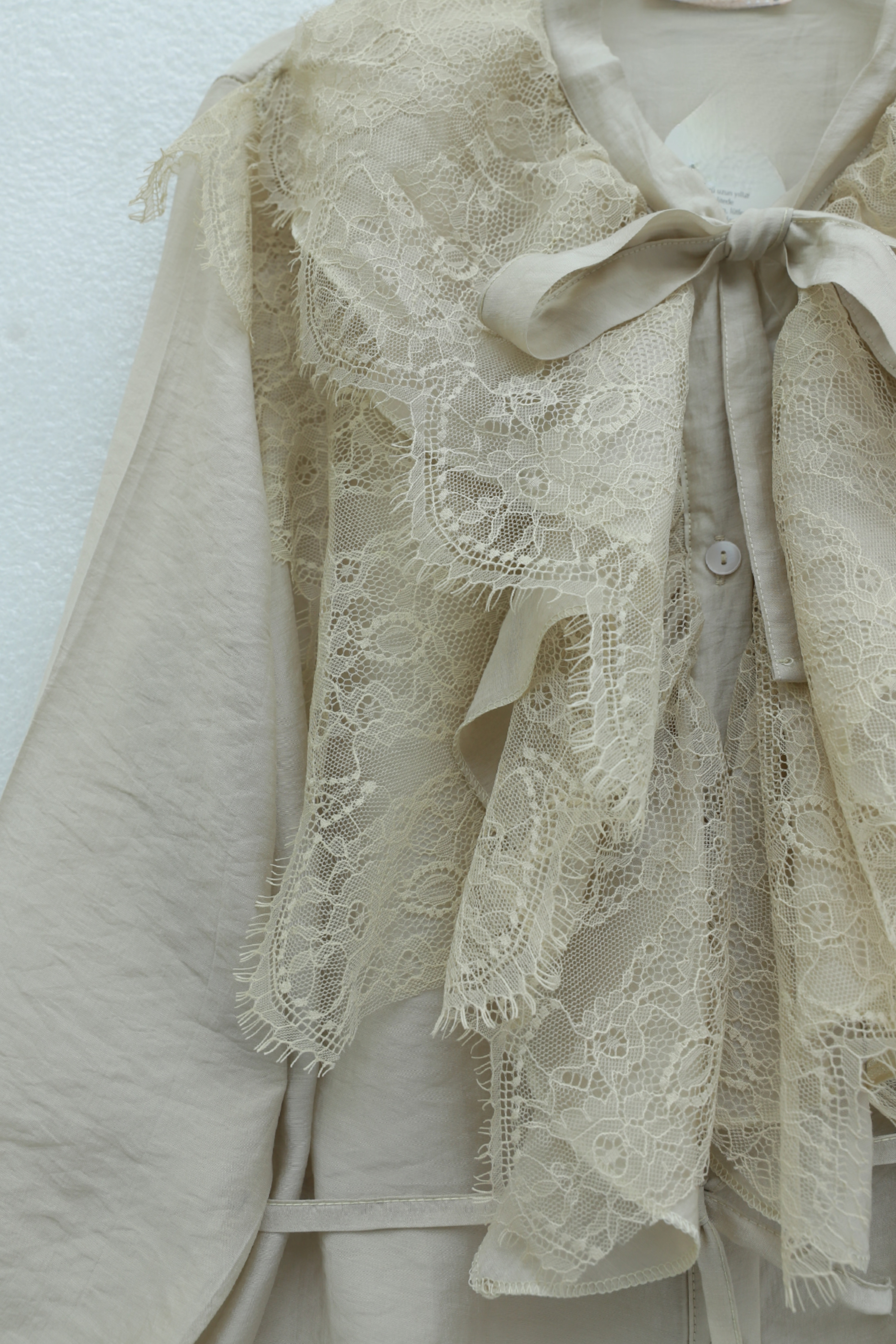 Yakası Bağlamalı Dantelli Fırfırlı Kemerli Pantolonu Astarlı Cupra Takım, zarif ve feminen bir stil sunar. Yaka bağlama, dantel ve fırfır detayları tasarıma romantik bir dokunuş katarken, kemer detayı beli zarif şekilde vurgular. Astarlı pantolonlu formu konforlu ve dengeli bir siluet oluşturur. Cupra kumaşı akışkan ve rahattır.