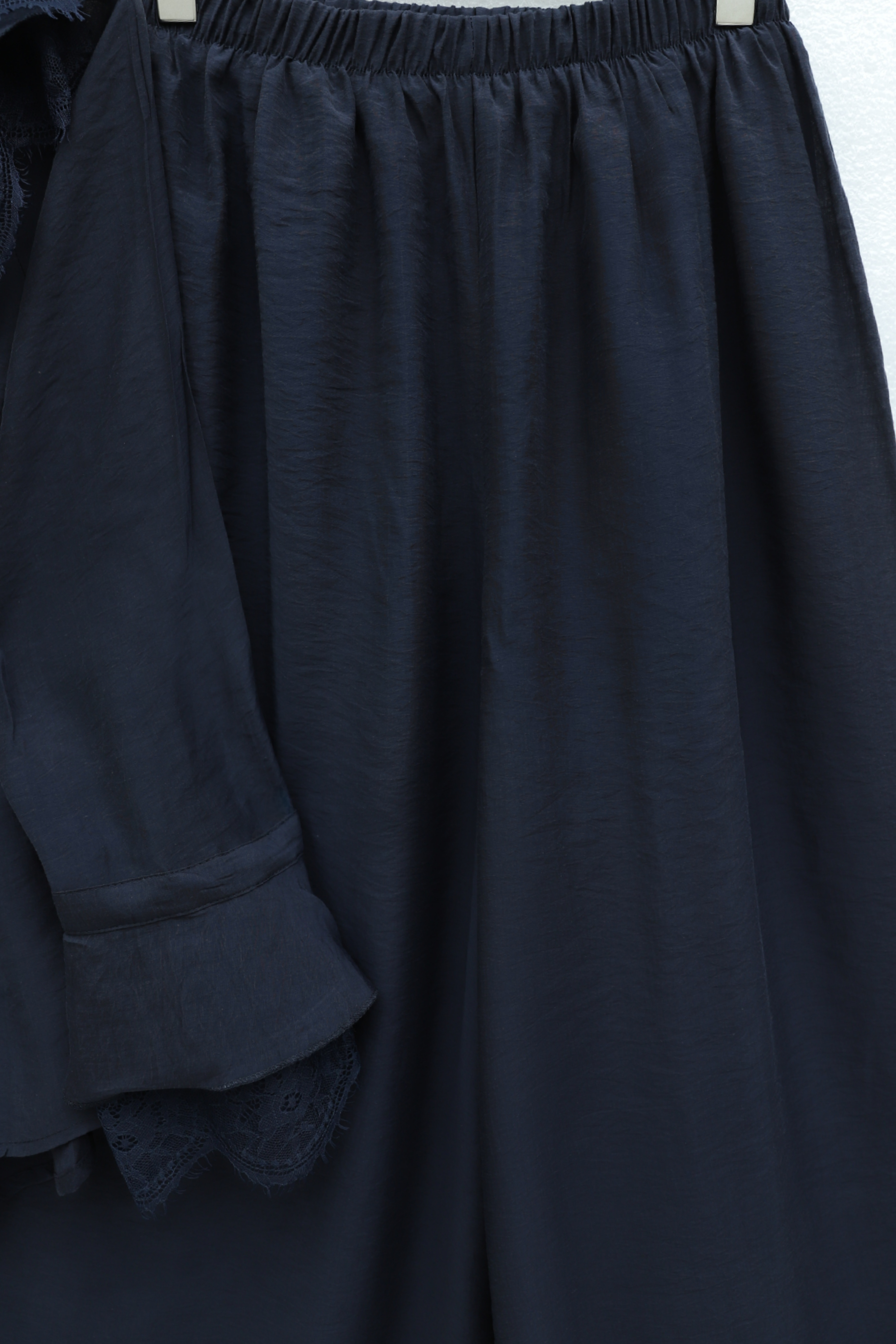 Yakası Bağlamalı Dantelli Fırfırlı Kemerli Pantolonu Astarlı Cupra Takım, zarif ve feminen bir stil sunar. Yaka bağlama, dantel ve fırfır detayları tasarıma romantik bir dokunuş katarken, kemer detayı beli zarif şekilde vurgular. Astarlı pantolonlu formu konforlu ve dengeli bir siluet oluşturur. Cupra kumaşı akışkan ve rahattır.