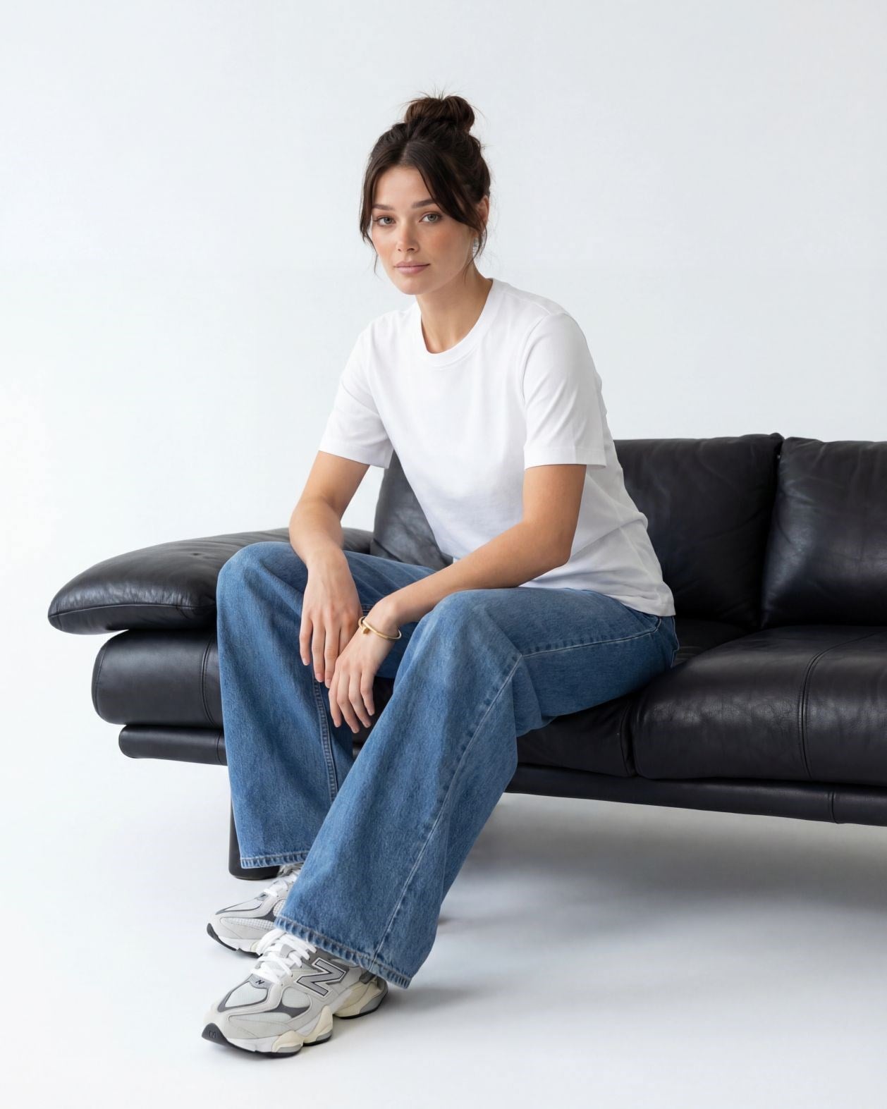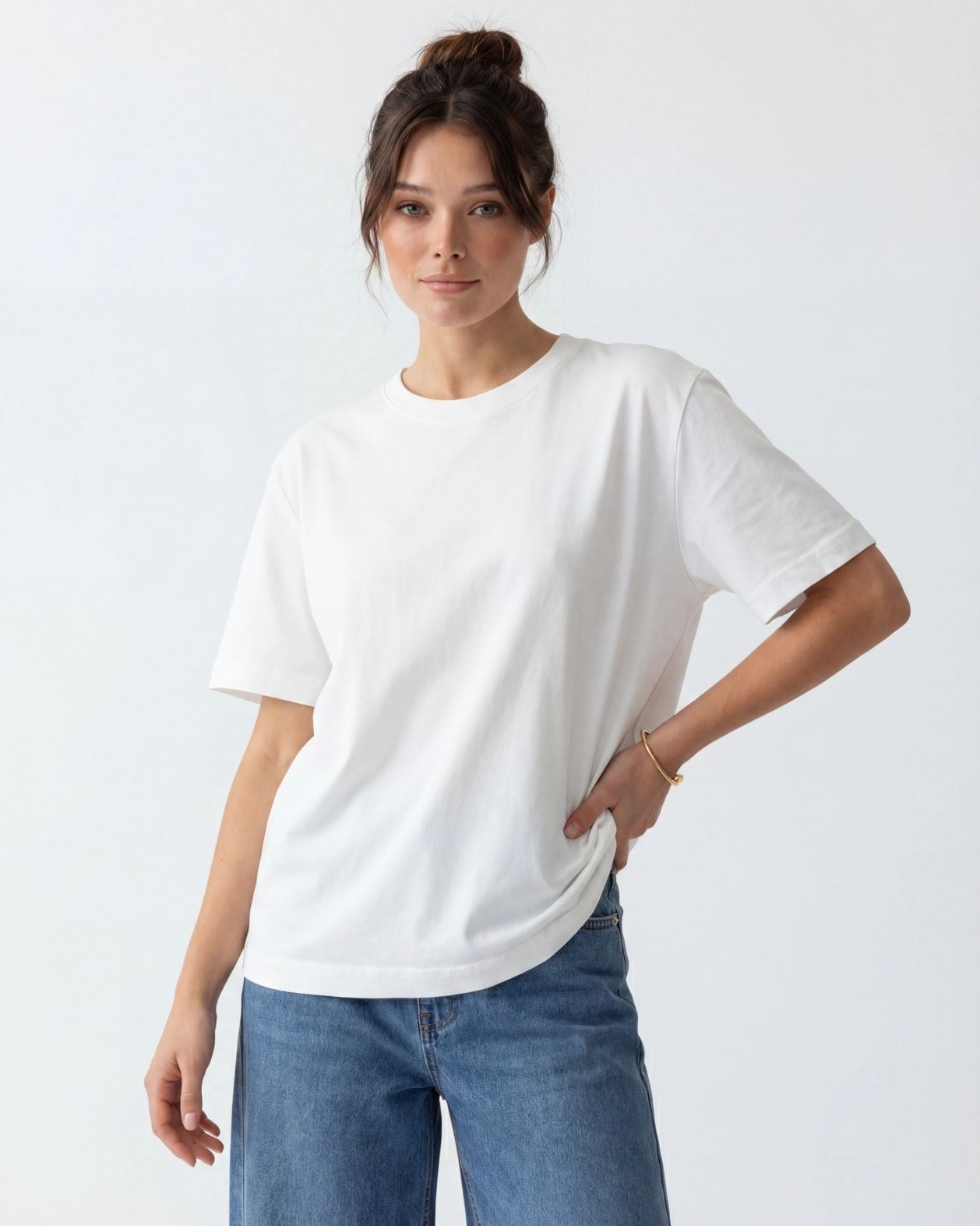 Kot Detaylı Toptan T-Shirt - Krem Mavi | Topshow