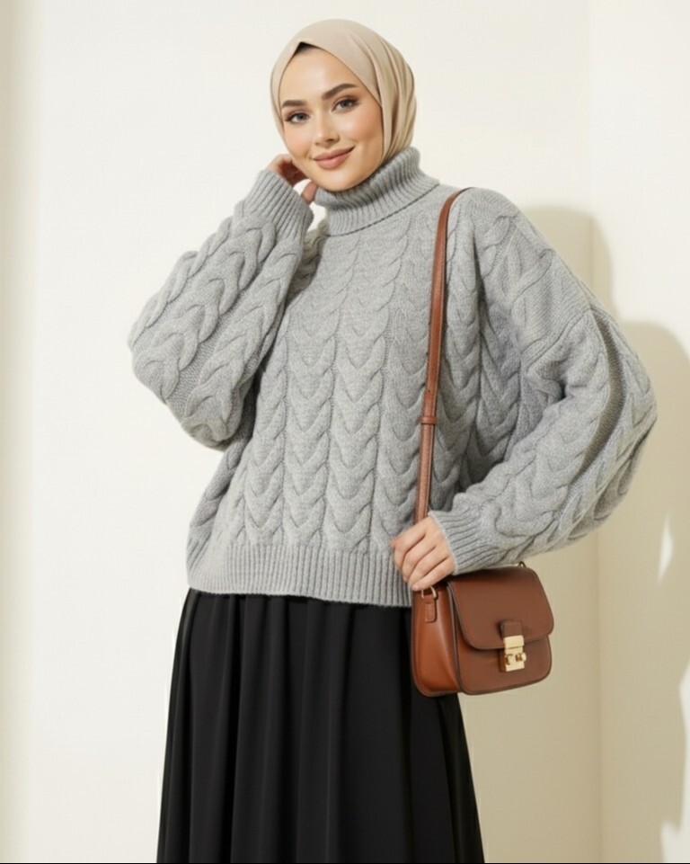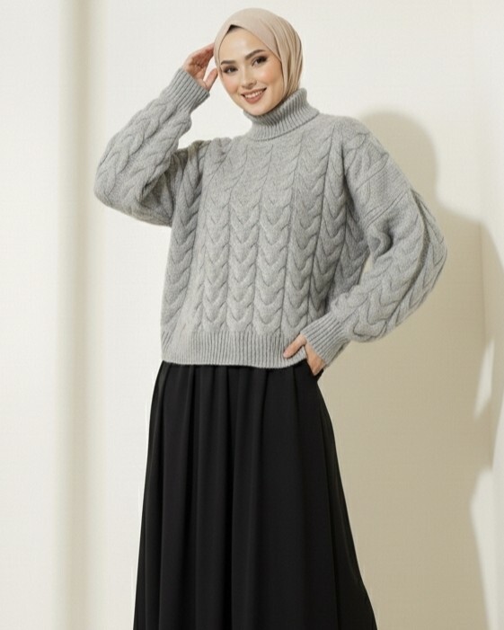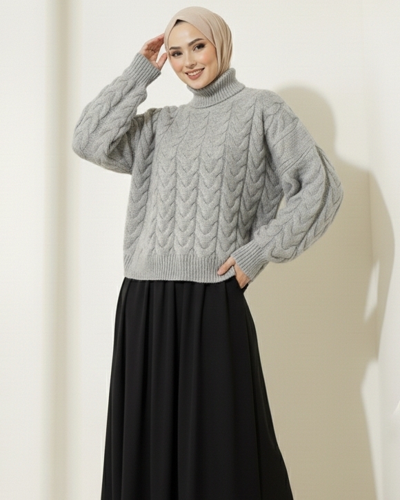 Örgü deseni ve boğazlı tasarımıyla bu triko kazak, soğuk havalarda şıklığı ve sıcaklığı bir arada sunar. Hem rahat hem de zarif bir seçenek.