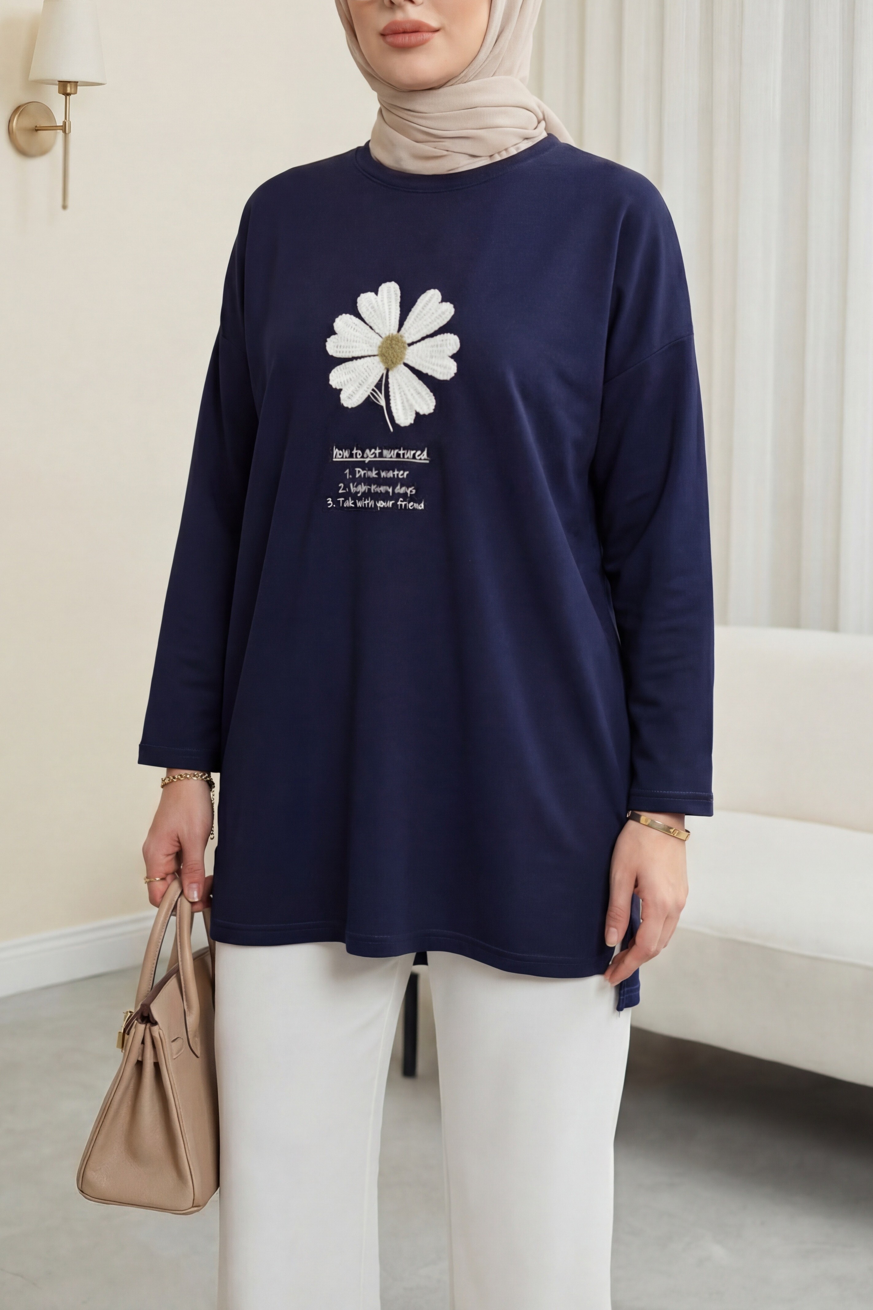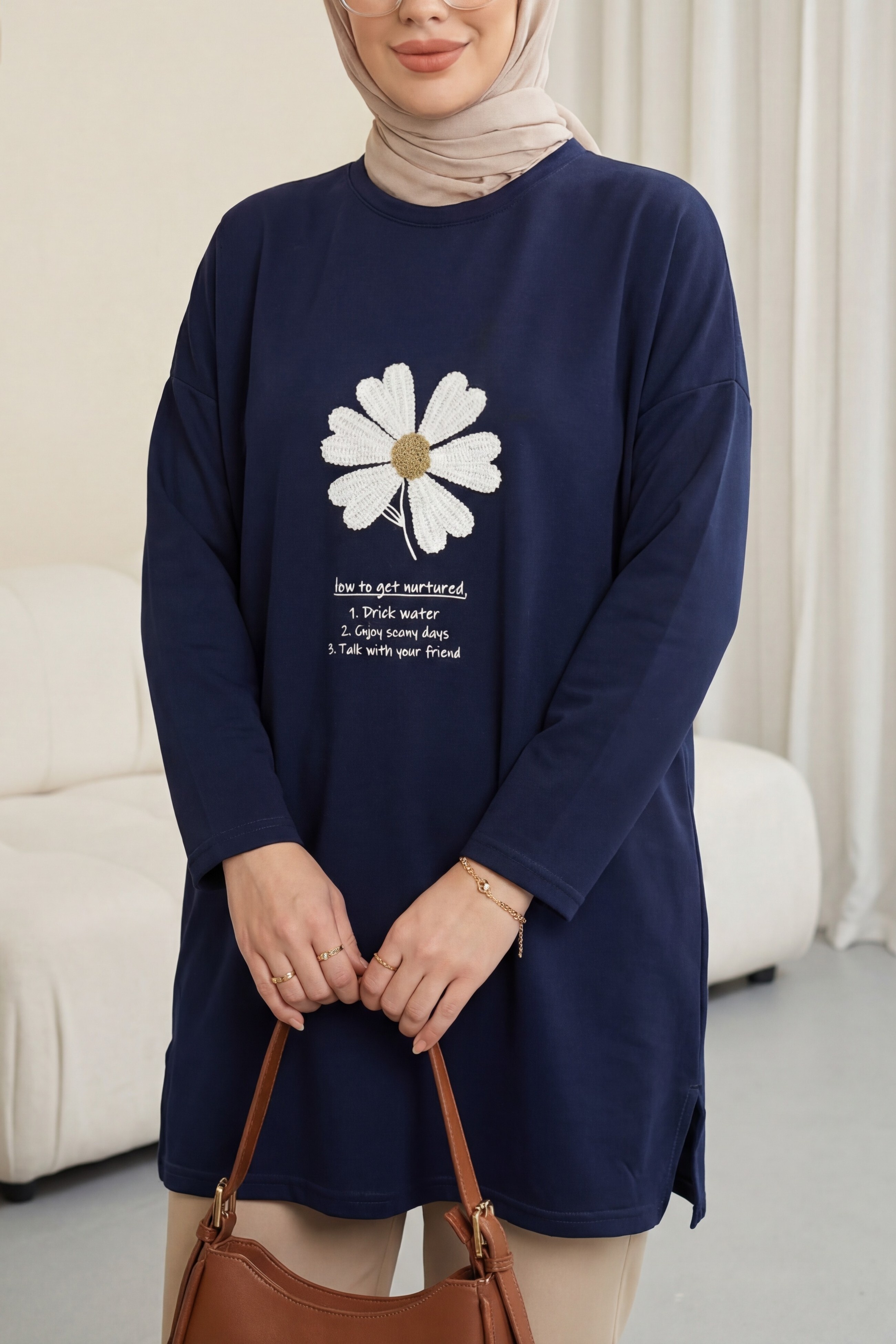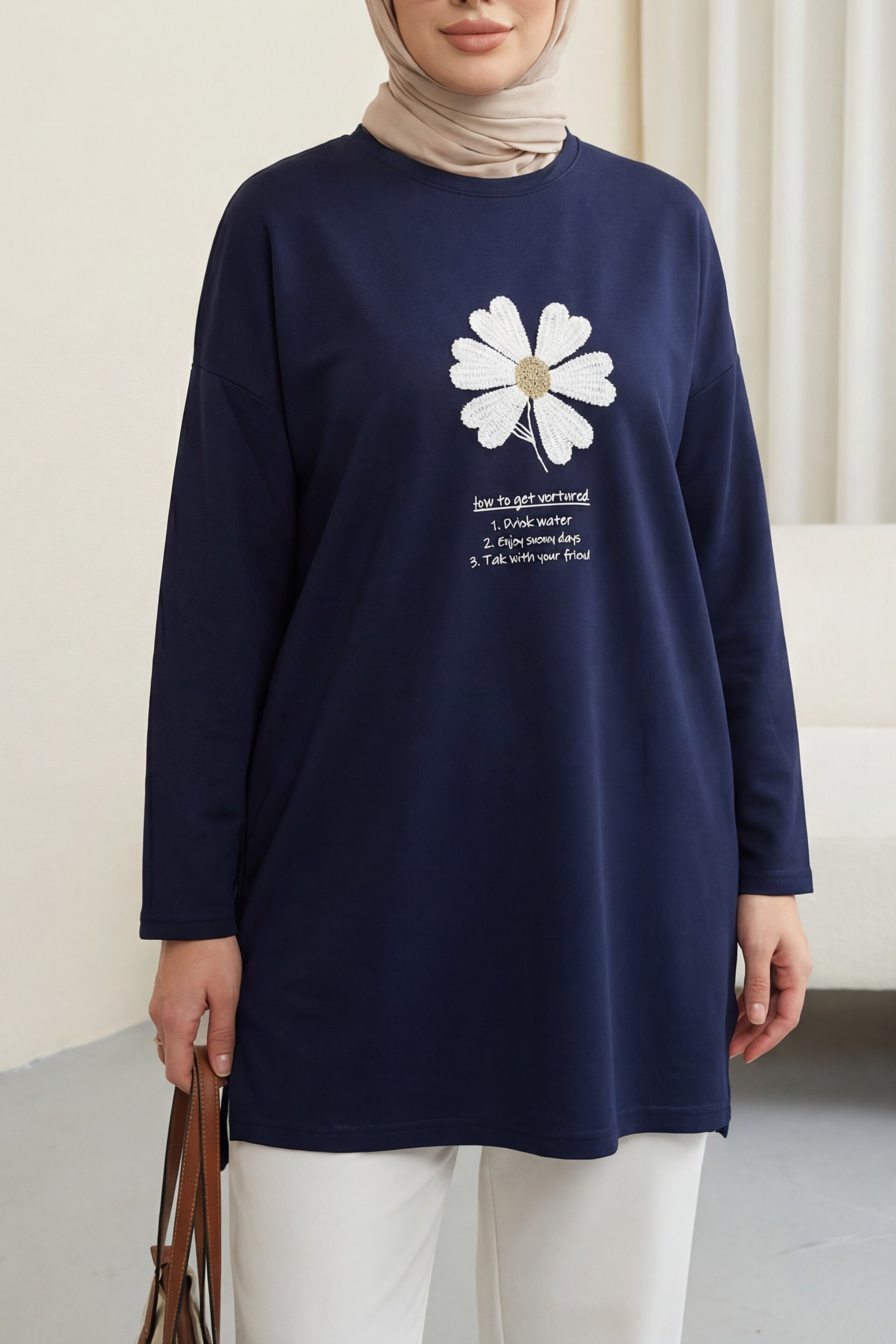 Önü Çiçek Nakışlı Bisiklet Yaka Penye Tunik, rahat ve zarif bir stil sunar. Çiçek nakış detayları tasarıma romantik bir dokunuş katarken, bisiklet yaka formu sade ve modern bir görünüm sağlar. Penye kumaşı yumuşak ve konforludur. Günlük kombinlerde kolayca tercih edilir.