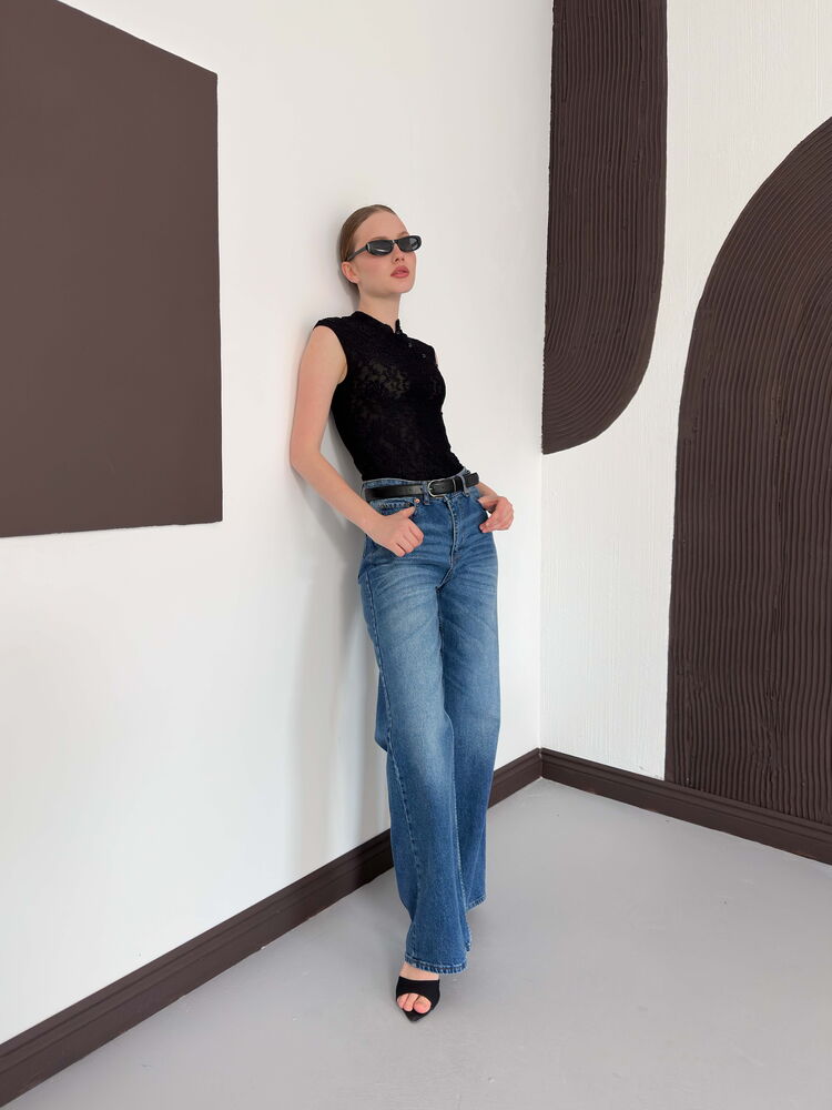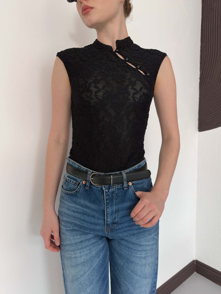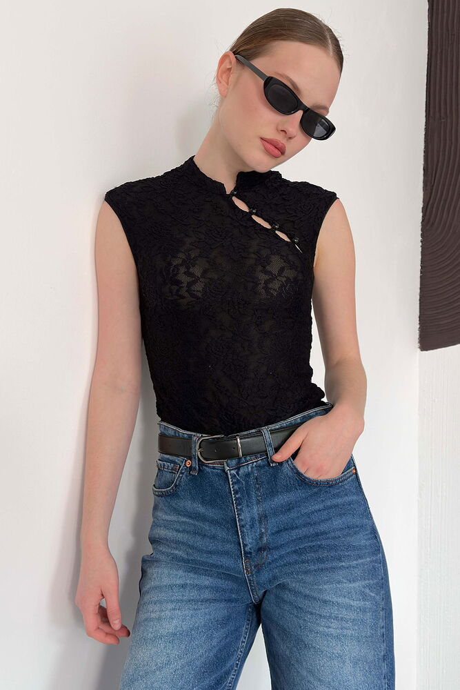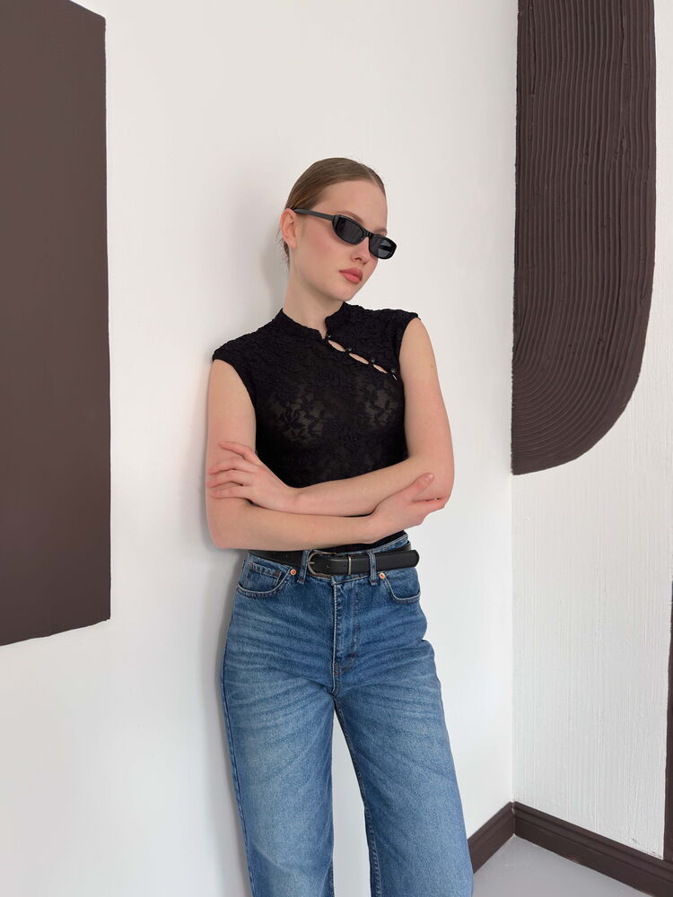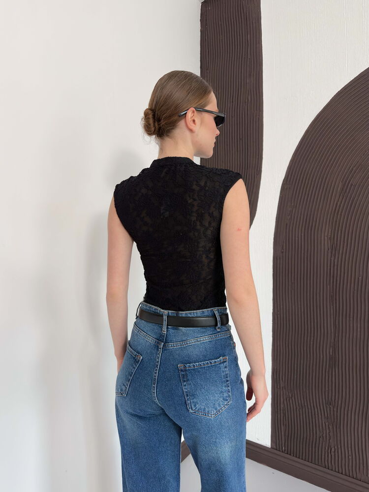 D 2997 KOLSUZ DANTEL BLUZ - SİYAH