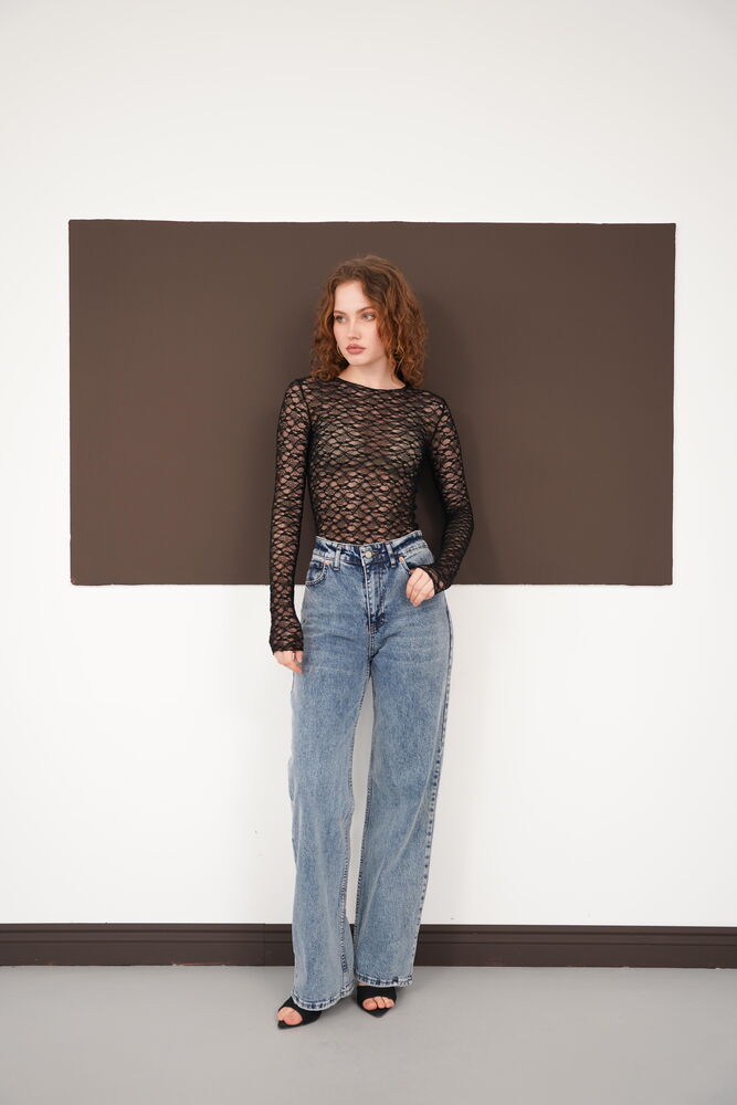 Dantel Toptan Bluz - Siyah | F2092 - Topshow